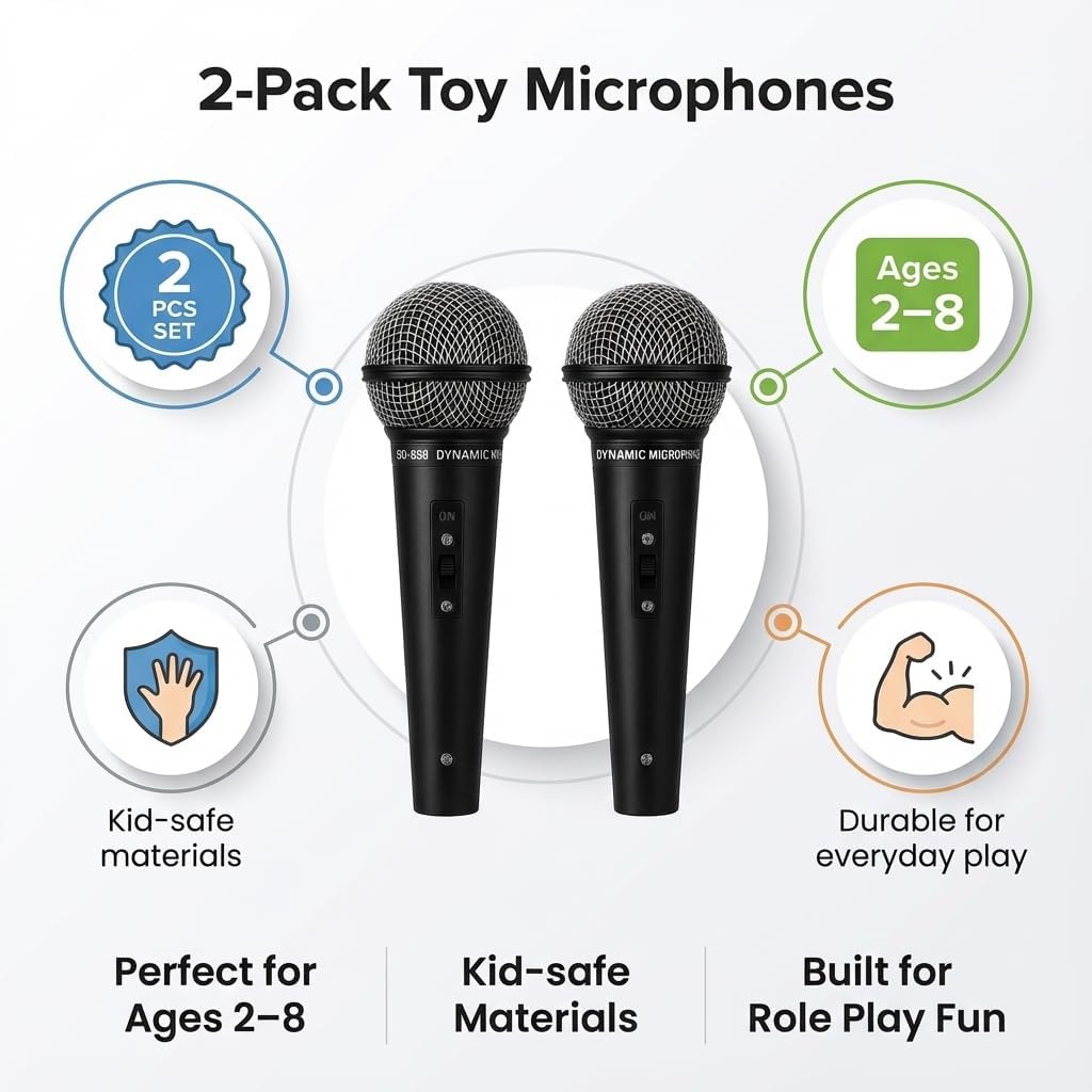 Kids Fake Microphone Prop: 2pcs Eco-Safe Toy Microphones for Family Party Singing & Role Play – Gift for Children Ages 2-8
