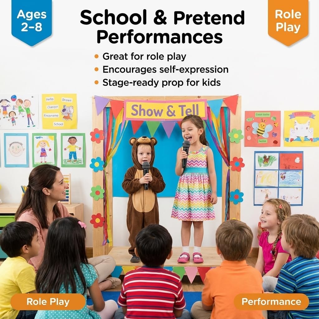 Perfect for Kids’ Role Play & Performances: Give children ages 2-8 the chance to become stars with these microphone props, perfect for pretend play, parties, and performances. Ideal for encouraging creativity and self-expression in your little ones.