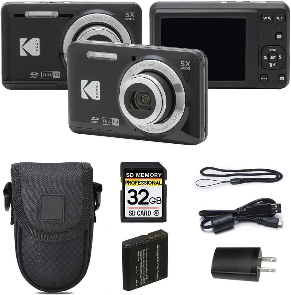 Kodak PIXPRO FZ55 Digital Camera, 16MP Compact Point & Shoot, 5X Optical Zoom, 28mm Wide Angle Lens, 1080P Full HD Video, Black + Camera Case & 32GB SD Card