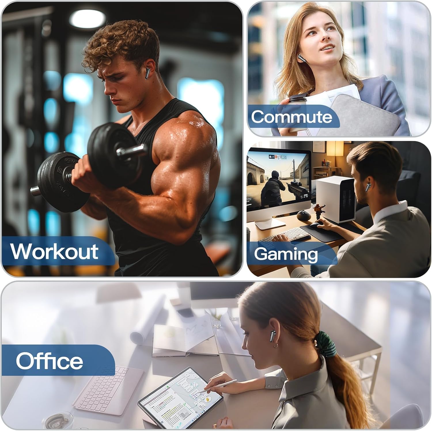 kurdene Wireless Ear Buds Bluetooth 5.4 Headphones 60H Playtime Deep Bass Stereo Earbuds with M…