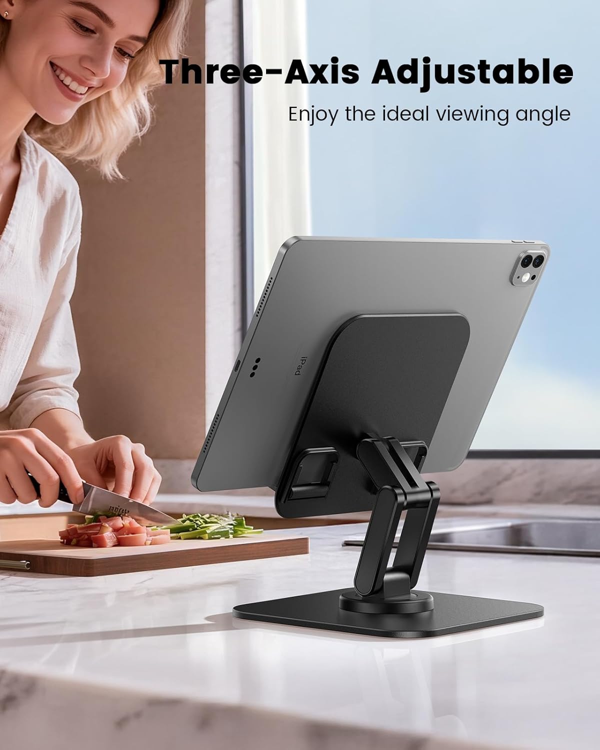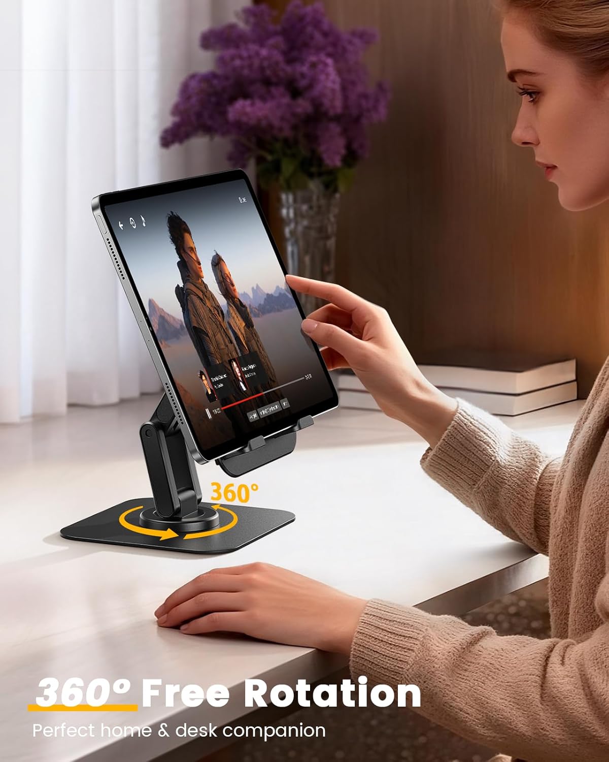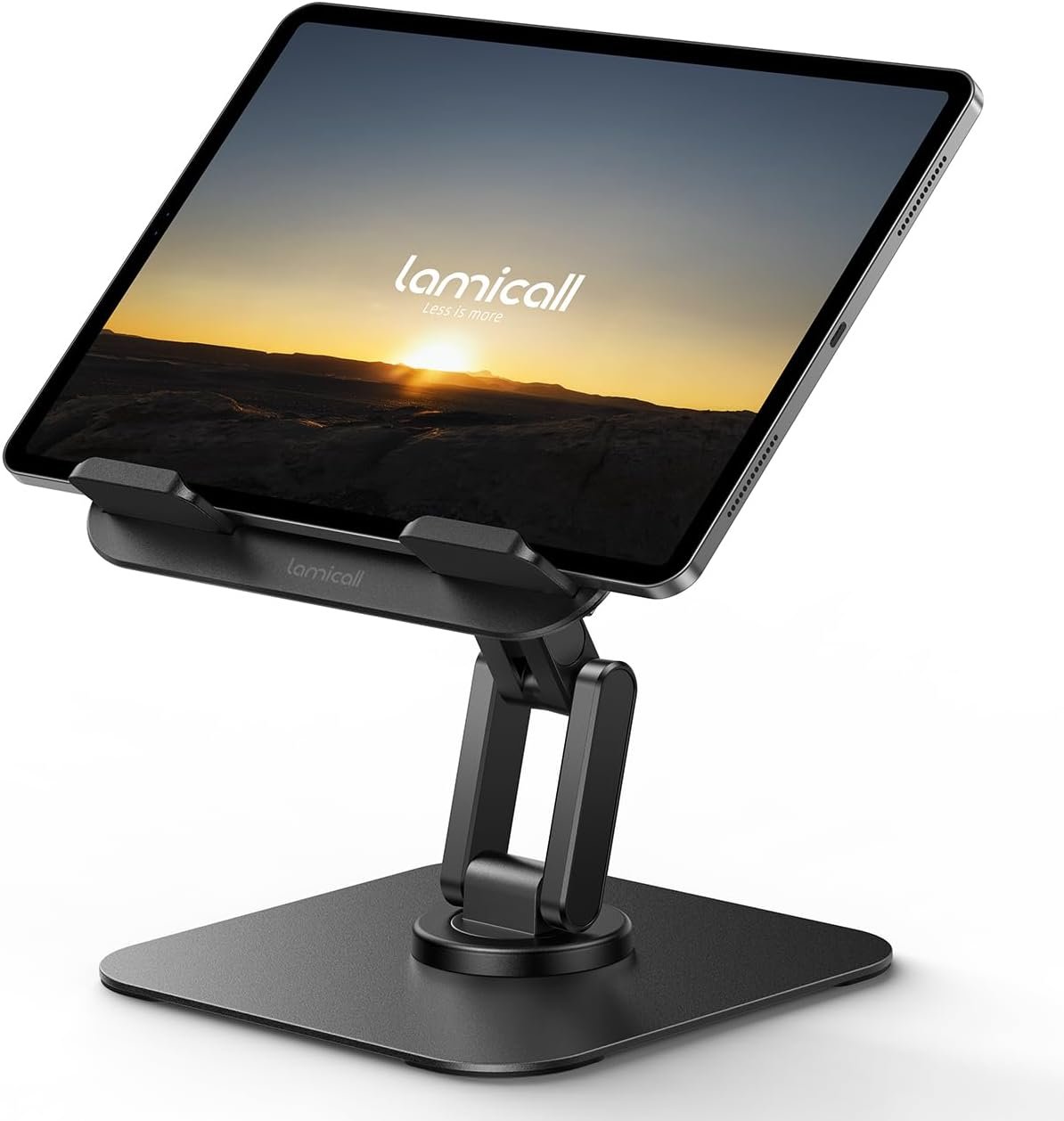 Lamicall Rotating Tablet Stand for Desk – [Fully Adjustable][Foldable & Portable] iPad Stand with Heavy-Duty Base, Tablet Holder Gifts for 4.7-13″ Devices, 2025 iPad Pro Air, Kindle, iPhone 17 Pro