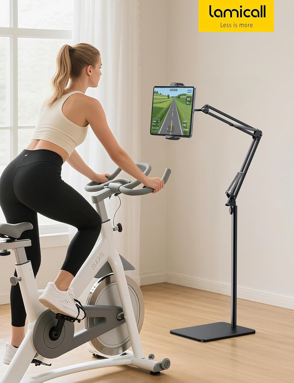 【Flexible Multi-Angle Adjustment】 Featuring a multi-joint adjustable arm (270° + 180° + 150° + 135°) and a 360° swivel ball head, the floor tablet stand allowing you to smoothly tilt, rotate, and swivel for the perfect viewing angle. Effortlessly switch between portrait and landscape for video calls, live streaming, movies, reading, or workouts—hands free.