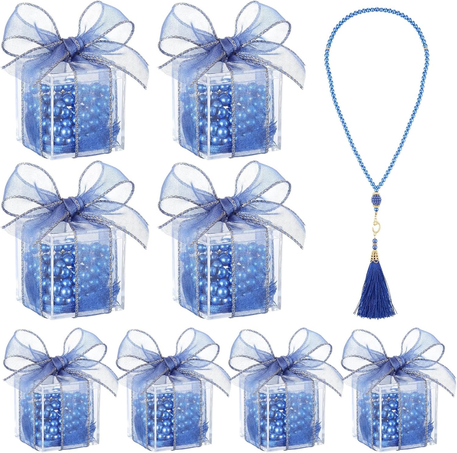 Landical 8 Set Ramadan Eid Gifts Islamic Prayer Beads Muslim Party Favors Pearl Prayer Beads Islamic Wedding Gifts for Ramadan Eid Tasbih Hajj Umrah Baby Shower for Women Men(Blue)