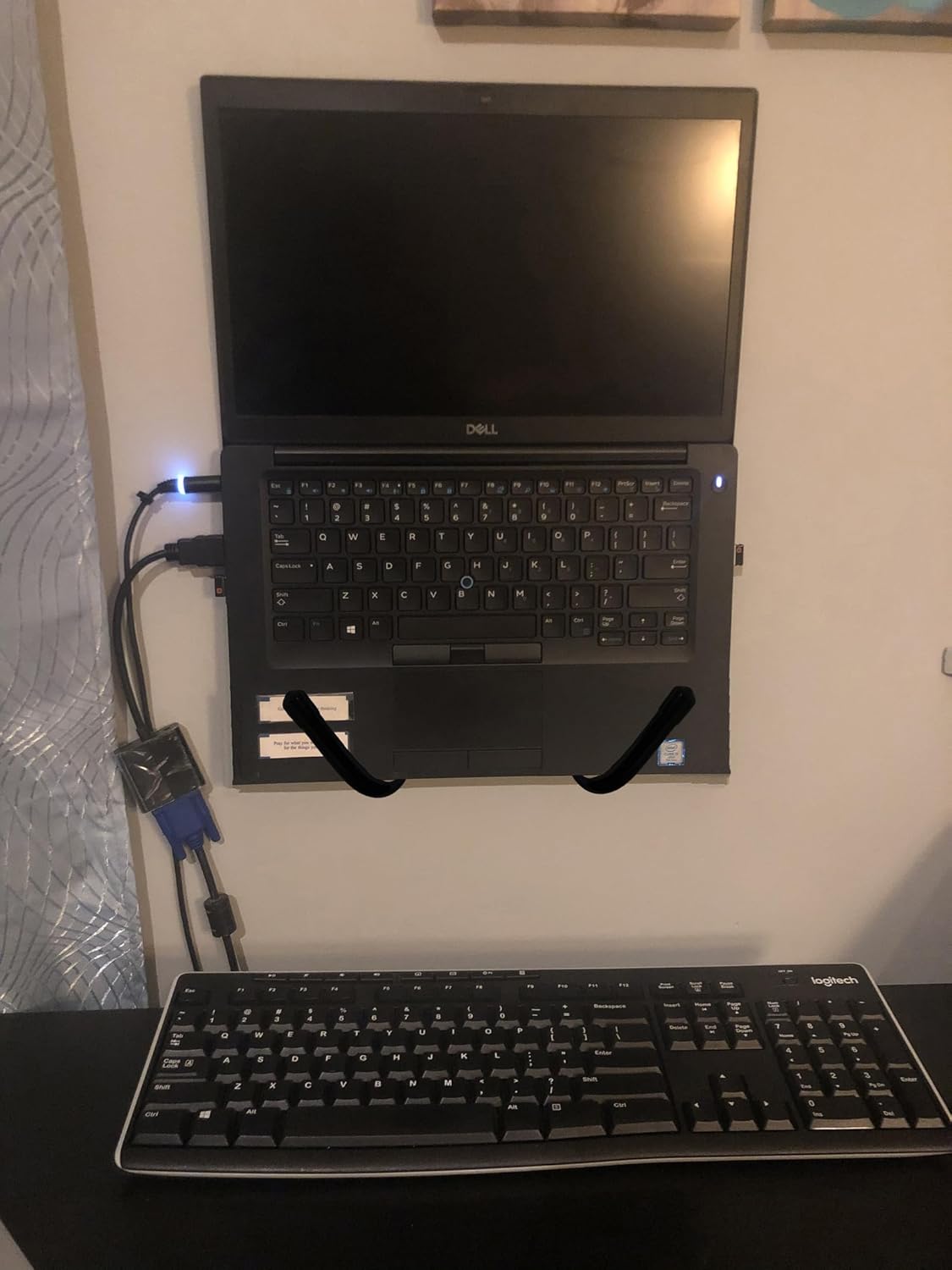 Come with 1 Rack – No laptops, no Keyboards. come with anchors and screws. Keeps the laptop securely in place. Suitable for laptops and almost any device weighing no more than 20 pounds, including Nintendo Switch, laptop, MacBook, Surface, keyboard, Switch, tablet, router, modem, DVD player, network switch, etc. I strongly recommend using this screw to install the bracket. Double sided tape is prone to detachment, Strong & Flexible – Made from metal. Our hooks can hold up to 20 pounds of stuff, Easy to install. Flexibility makes it easy to fit and function with anything you can throw at it. As you can see, you can shape these hooks to fit anything. And they are super grippy too, no worries about falls.The rubber coating on the hanger itself is very smooth and soft. Ensuring no damage to the laptops as it hangs. Easy to hang and install – Hardware Included, Just nail the holder to the wall and placed laptops. Took less than 2 minutes to do both. Easy to hang and very sturdy. Even if it is hung up for many years, it will not fall down. Your device is now safe and reliable, in the perfect position when not in use or when docked with the monitor and keyboard. Anti scratch: Rubber coating – no scratches or rust, your laptop can be easily and safely placed in a stand. The hanger is adjustable for easy removal or placement of the device. Please adjust it according to your needs to expand it to fit your items. It is recommended for heavier laptops and other delicate and expensive devices. Easy to use: The laptop stand can be installed on the wall to make space for the desktop and keep your desk tidy and organized. There is sufficient cooling space on the back of the device. The laptop stand is not blocked and does not affect the use of the power cord and other device interfaces,This is also an excellent gift for partners, children, friends, and more.