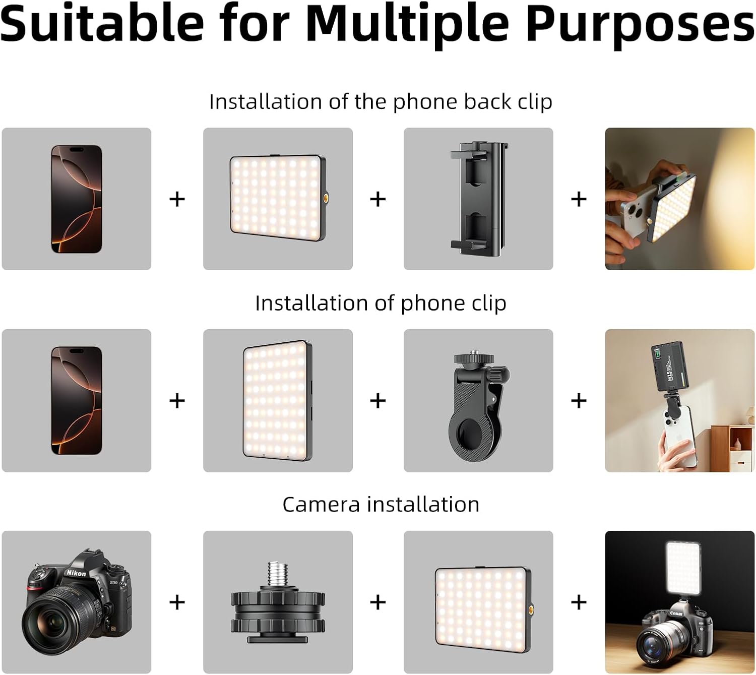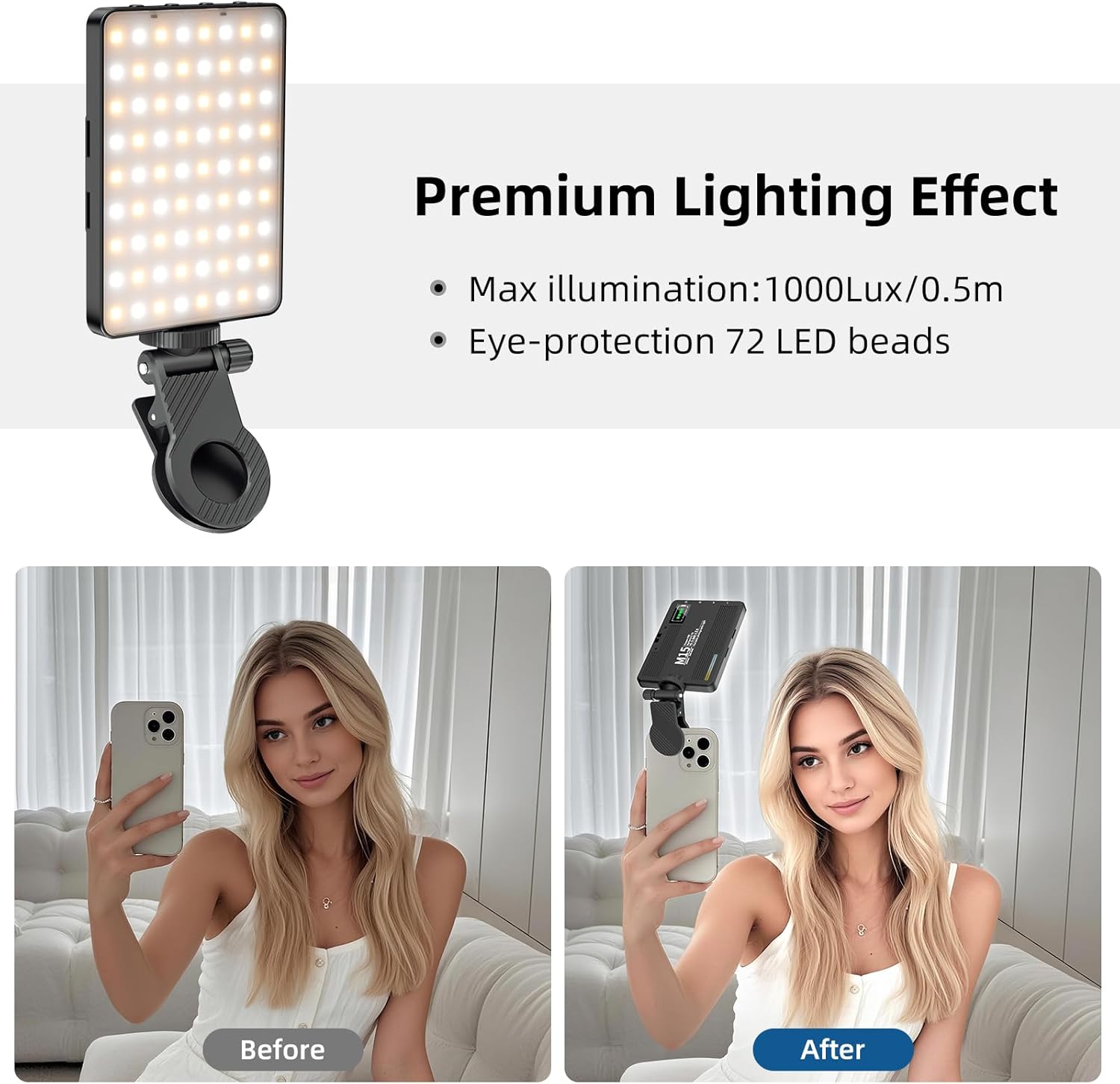 【Exceptional Light Quality with CRI 97+】This slim and lightweight LED light instantly enhances your appearance during photos, video calls, makeup, selfies, vlogging, live streaming, and more. With a impressive CRI of 97+, it delivers professional-level lighting, creating beautiful effects that make your skin glow naturally and evenly.