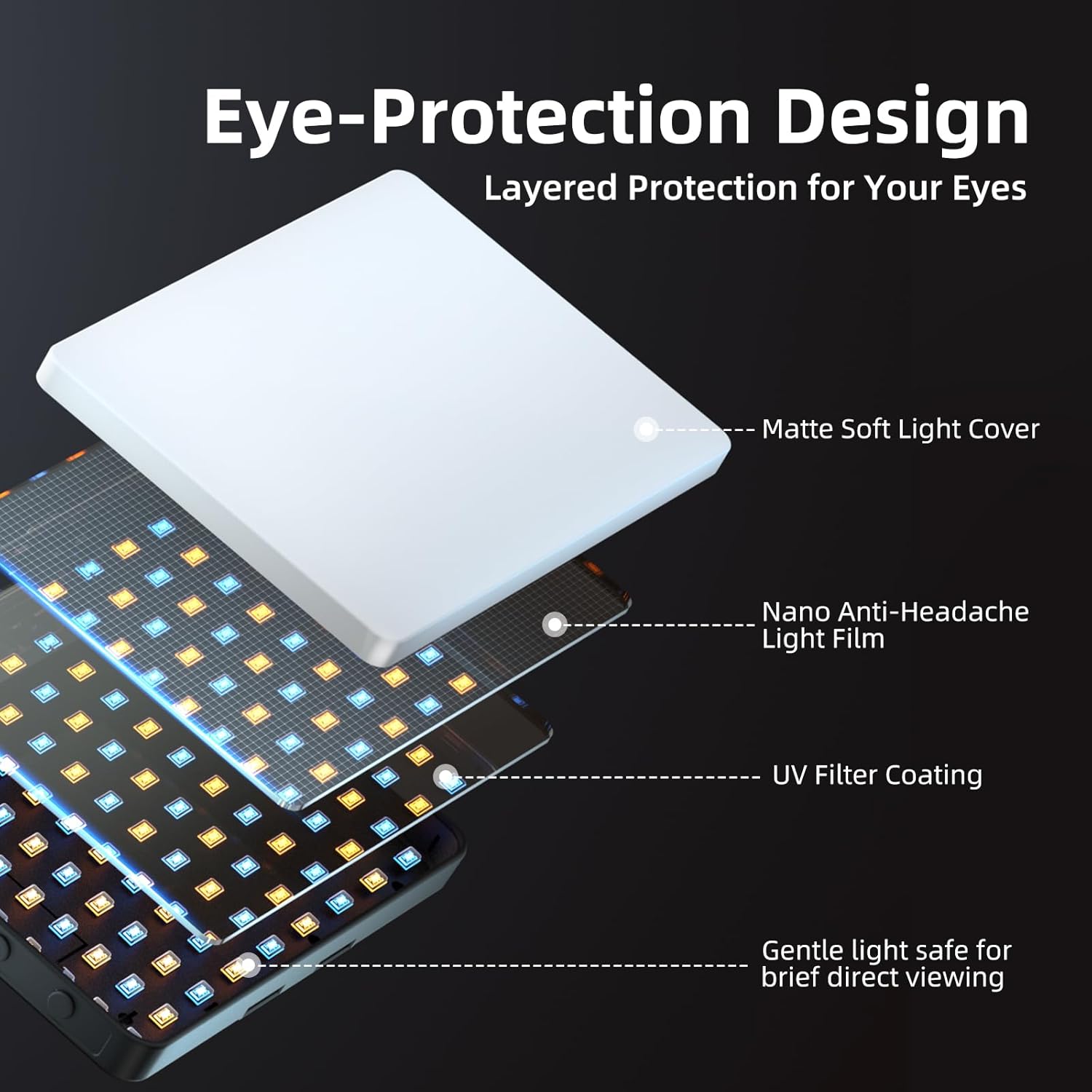 【Multi-Function & Versatile Design】The 160° rotatable LED panel allows precise light positioning for your devices. Includes an adapter with a ¼-inch thread and 180° rotatable head, compatible with cameras (hot shoe mount included), tripods, and selfie sticks. Offers superior fill lighting compared to small ring lights and features a built-in double-layer soft light cover for uniform and glare-free illumination.