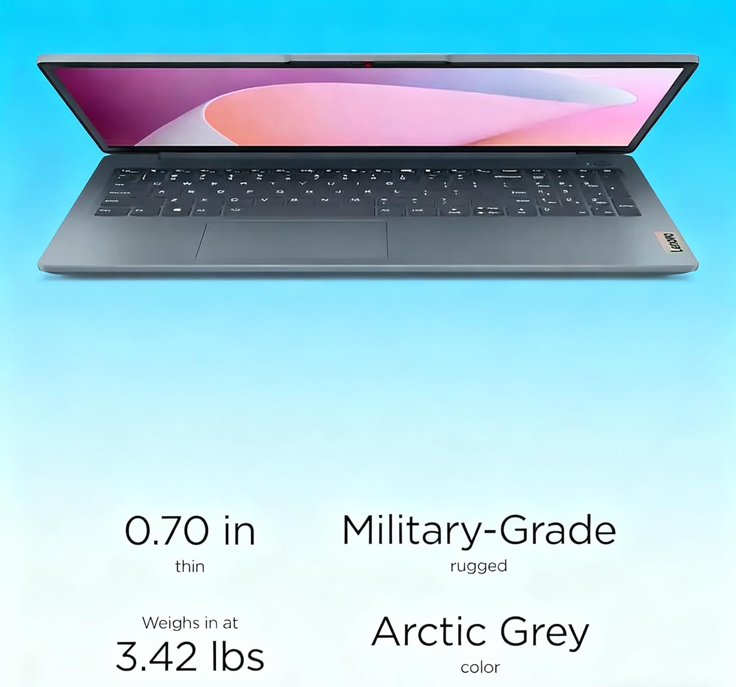 Lenovo IdeaPad Slim 3i 15.6″ FHD Laptop, Intel Core i3-N305, 8GB LPDDR5 RAM, 128GB UFS Storage, Wi-Fi 6, 8Hr Battery, Rapid Charge, Privacy Webcam, Dolby Audio, Windows 11 Home in S Mode, LE Bundle
