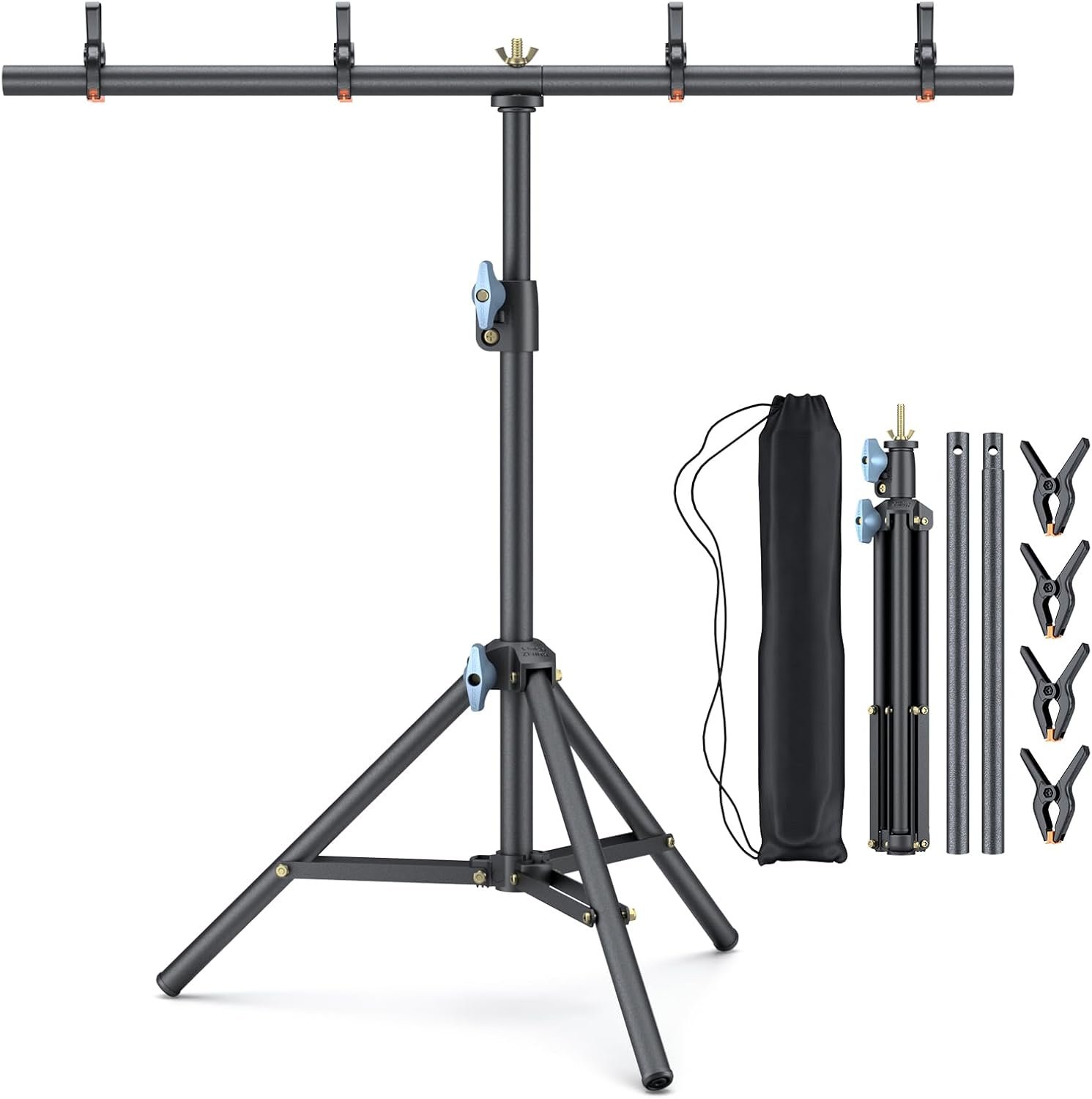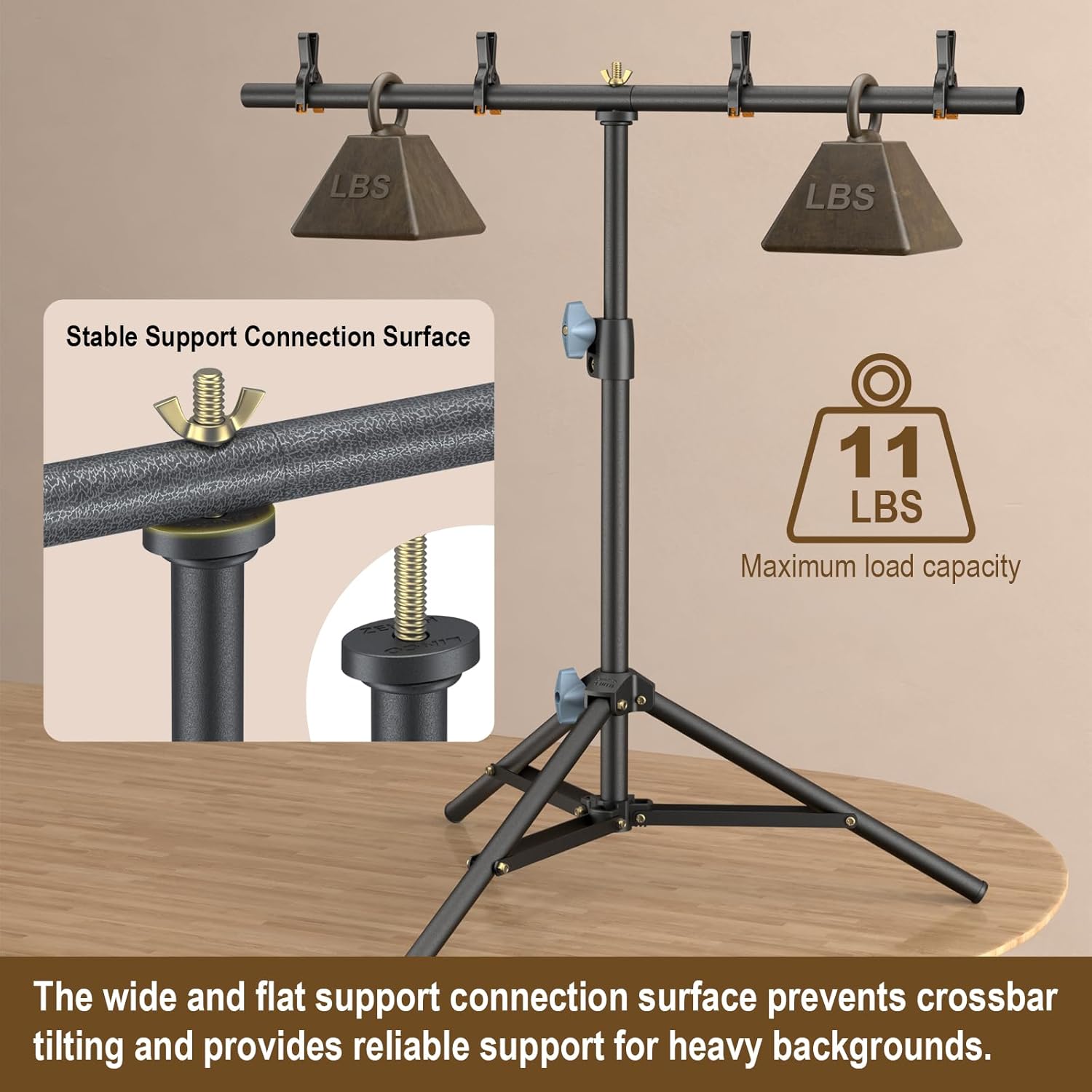 This lightweight and portable T-shaped backdrop stand securely holds various materials, enabling you to effortlessly create compact photo backgrounds. Whether you’re capturing product shots, composing still lifes, or recording videos, this stand offers dependable support.
