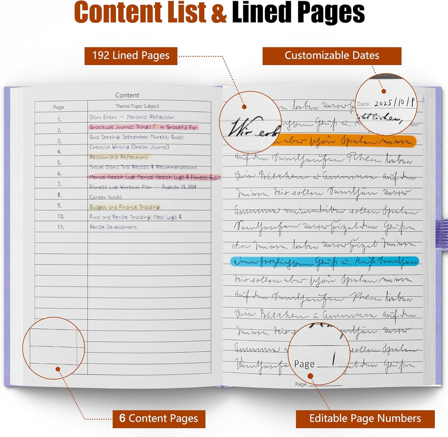 Lined Journal Notebook, A5, 192 Pages 100 GSM Thick Paper, Hardcover Leather College Ruled Jour…