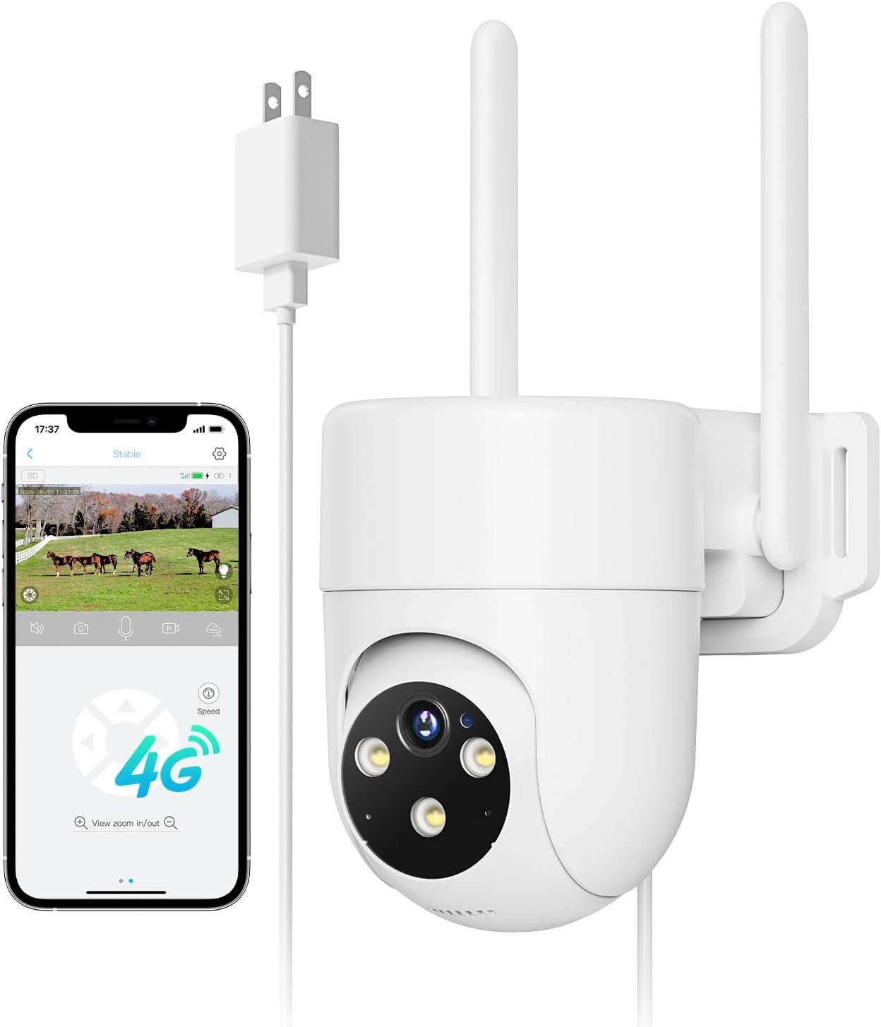 LIWAN 4G LTE Cellular Security Camera Wired, No WiFi Security Camera Outdoor, Plug-in for 24/7 Recording, 360° View, 2K Color Night Vision, 2-Way Talk, Built-in SIM Card, White, 1 Pack