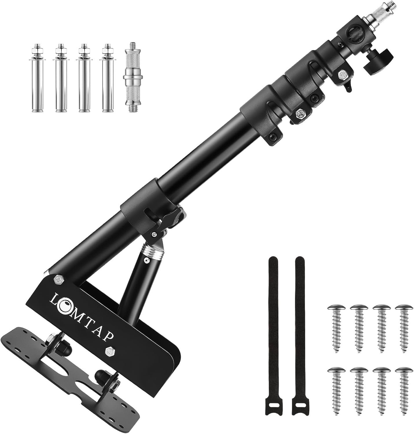 LOMTAP Ring Light Wall Mount Adjustable 45.7″ Boom Arm Stand for Photography Lighting Studio, Camera Triangle Wall Mount, Sturdy Alloy Support for Salon, Tatto Light, Barber Shop, Strobe