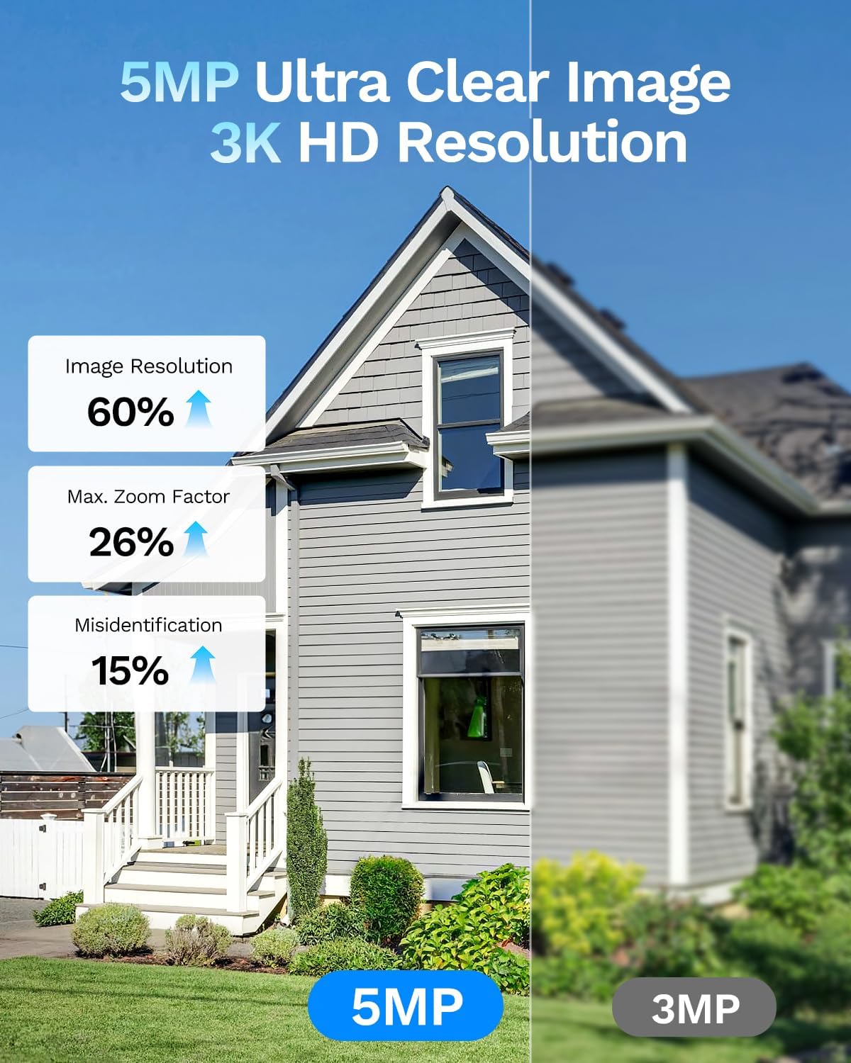 【Person/Vehicle Detection & Real-Time Alerts】 Stay secure with LongPlus indoor window security cameras. This stick on window camera wireless uses AI detection system to smartly identify people and vehicles. When motion is detected, it sends instant alerts to your phone, allowing you to promptly check the live feed. With 5MP HD resolution and a 118° wide-angle lens, it clearly captures faces and license plates across a broad area.