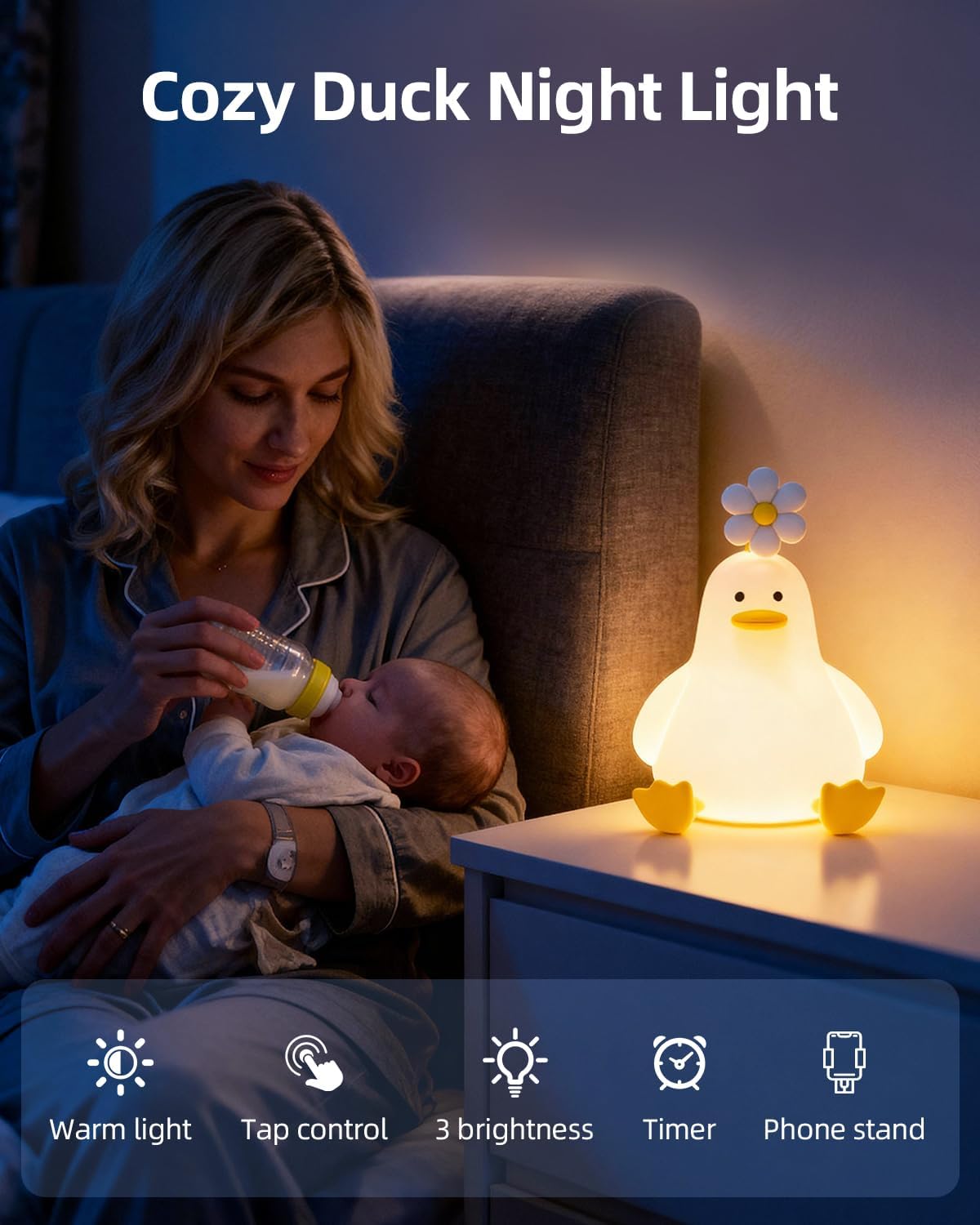 [Baby Monitor with Night Light & Gift Option] – Bonus Rechargeable Duck Light Included: Comes with a cute duck night light, offering a soft glow to comfort babies at bedtime. Also functions as a phone holder, toy, or portable light—making this product a thoughtful baby shower gift for new parents.