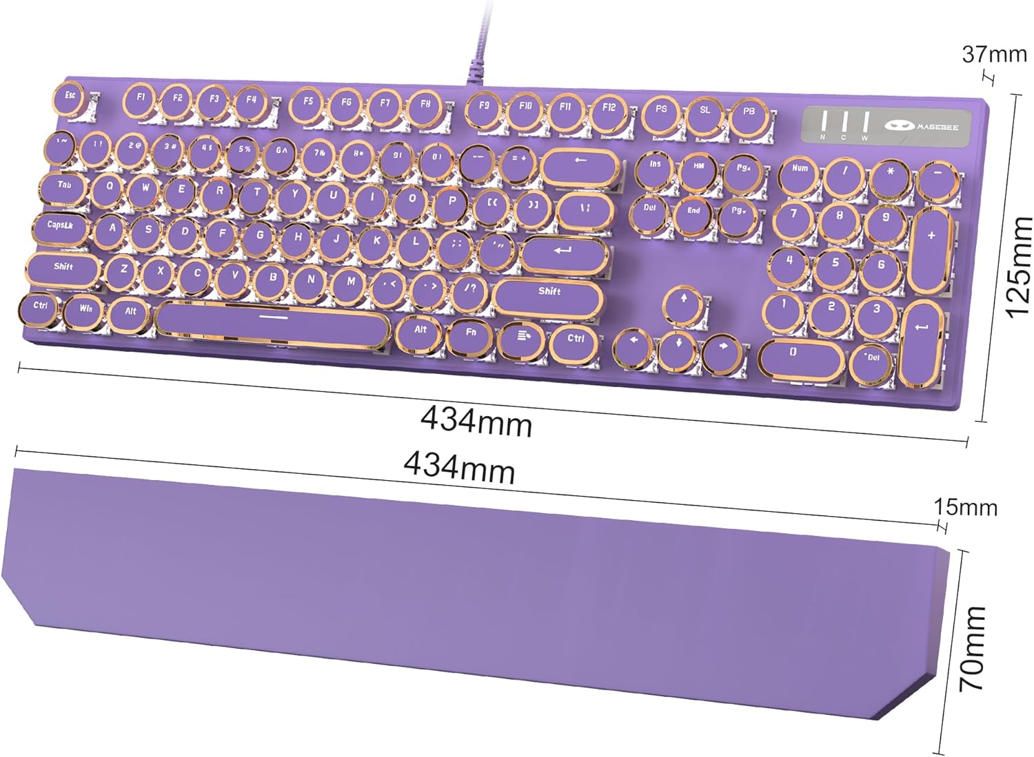 MageGee Typewriter Mechanical Gaming Keyboard, Retro Punk Purple Round Keycaps, 104 Keys LED