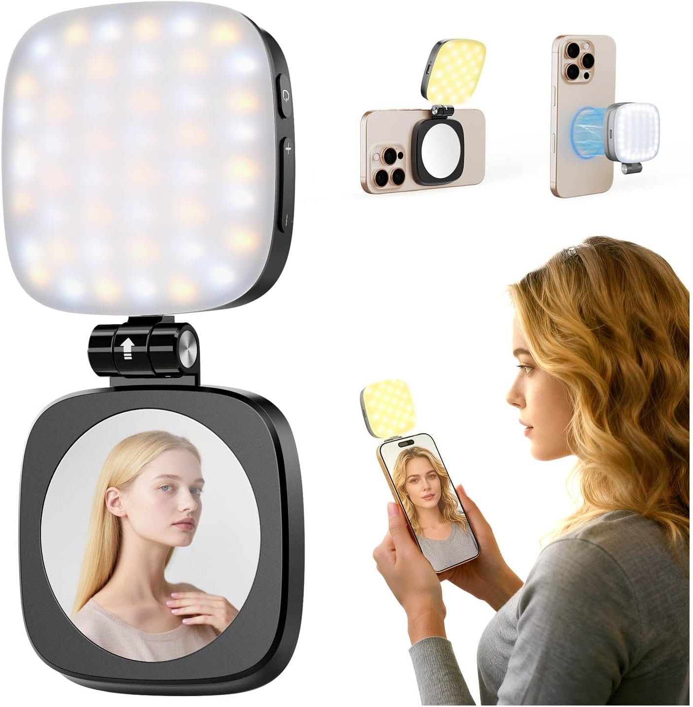 Built-in Folding Mirror: Your stream-ready beauty companion. Integrates a 48mm high-definition anti-scratch mirror right below the light. Perfect for touch-ups while live streaming or recording. Folds securely for protection and portability