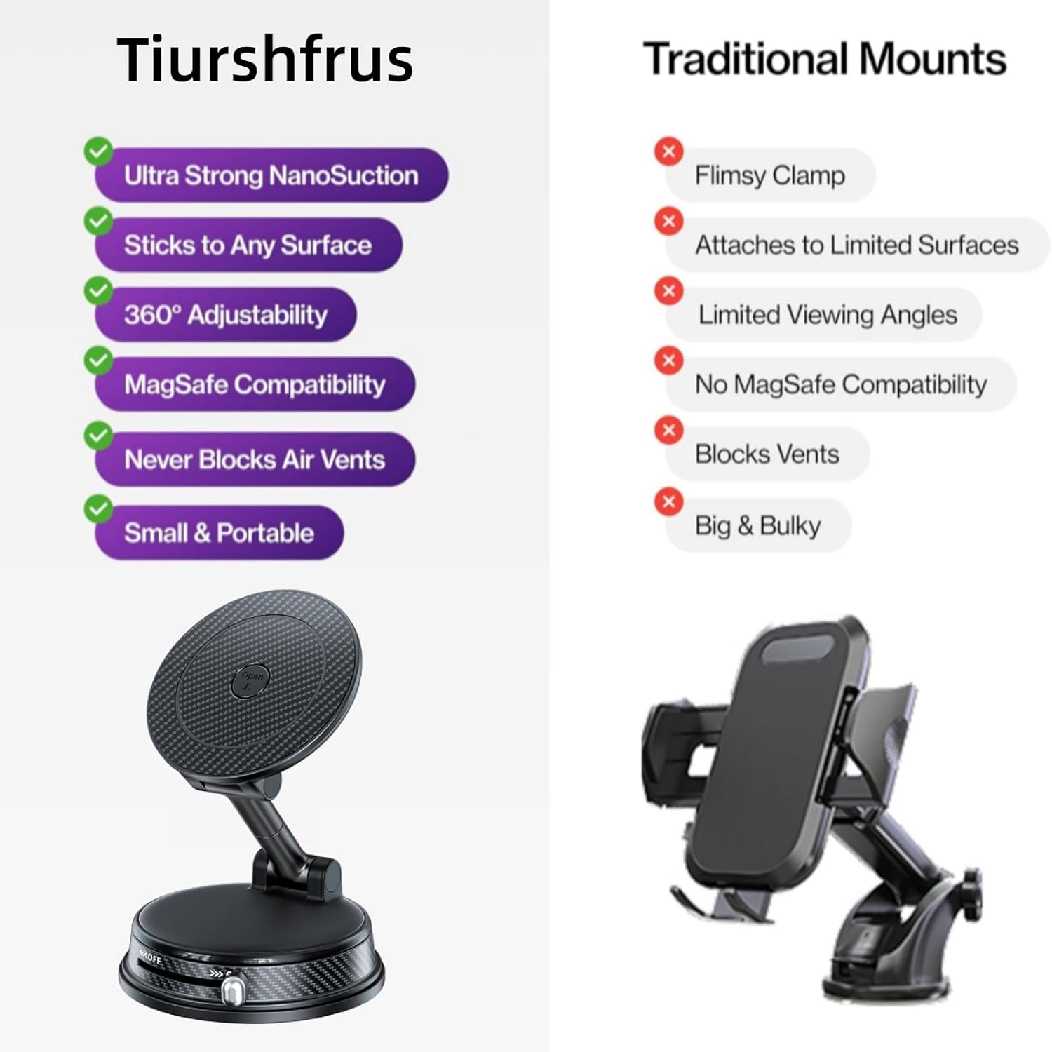 【3-SECOND INSTALL, ZERO GUESSWORK: The “Stupidly Simple” Setup】 Forget complex clips or sticky tapes. Our innovative one-press silicone suction attaches to your dashboard with a firm press. To remove, just flip the lever—it peels off cleanly, leaving NO sticky goo, NO ghost marks, and NO regrets. Your car‘s interior stays showroom-perfect. Go ahead, test it risk-free today