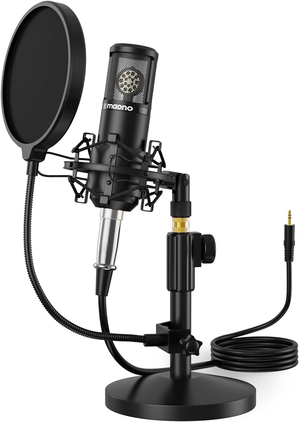 Package list: condenser mic*1, Shock Mount*1 , Table stand*1, Pop filter*1, Wind foam*1, XLR-3.5mm cable*1