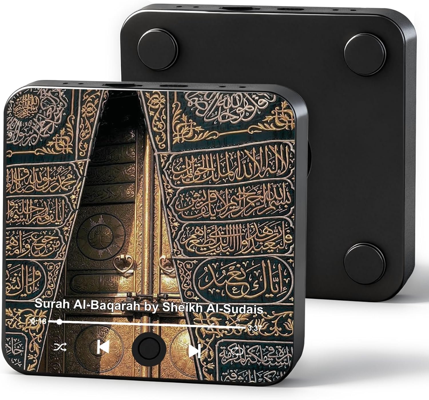 Customizable Audio Experience Preloaded with famous Qaris’ recitations of key Surahs. Supports personalized tracks via SD card, USB, or Bluetooth—making it a unique pick for muslim gifts and islamic gifts.