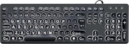 MCSaite Wired Backlit USB Keyboard – 104 Keys Standard Full Size with White LED Large Letter