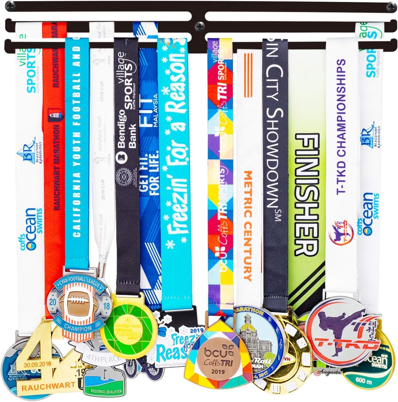 ✔【Super strong】-Miayork medal holder with Newly Improved quality made of premium pure steel.Rest assure that it will steadily hold even the heaviest medals on the wall, can hold large capacity from 5kgs to 8kgs(11lbs to 18lbs). It is stronger and much lighter than wooden medal hangers,acrylic medal hanger, but sturdy to hold heavy medals without getting bent. ✔【Easy hanging bars】-Miayork designed 4 wider hanging bars compared than current market medal holder.