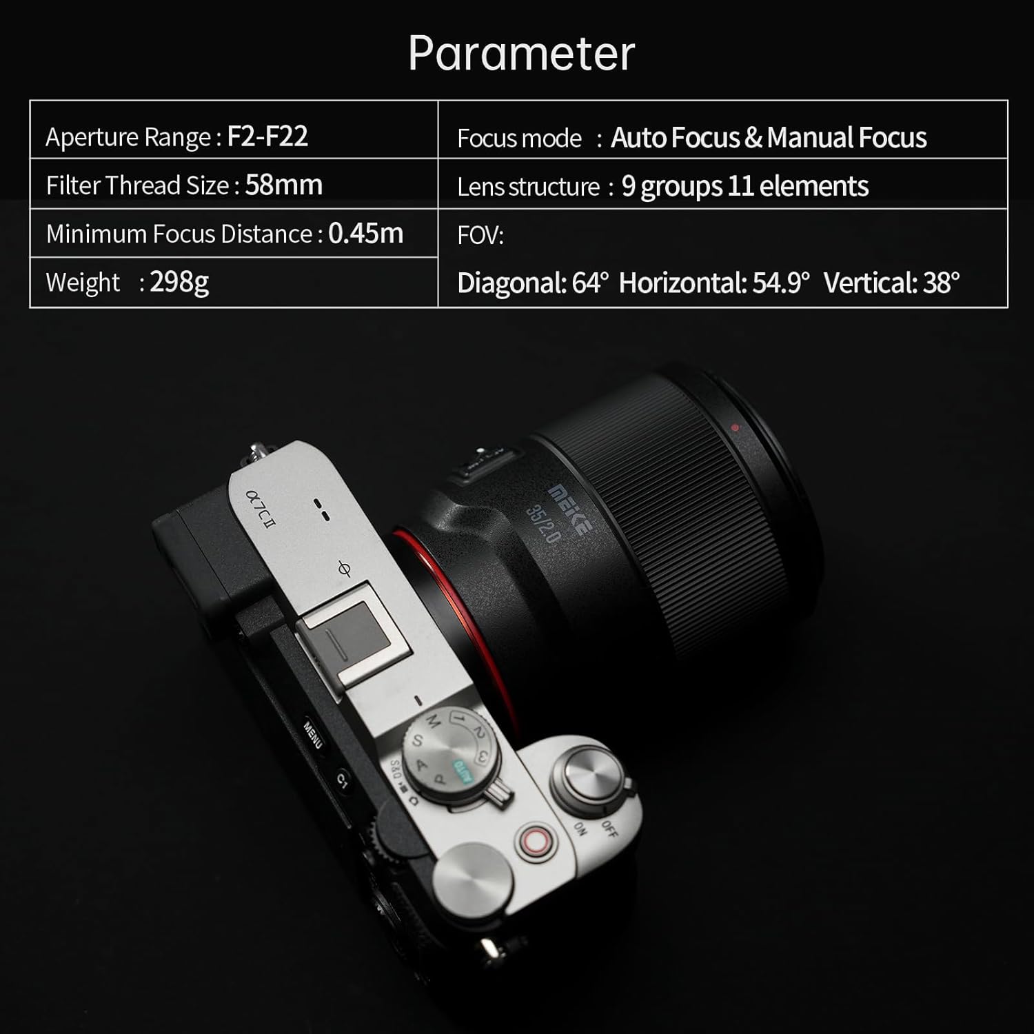 Meike 35mm F2.0 Auto Focus Wide Angle Full Frame STM Stepping Motor Prime Portrait Lens Compatible with Sony E Mount Cameras A7 A7II A7R A7IV A7R IV A7III A7RII A7RIII A7SIII A9 A9II A7C A7CII