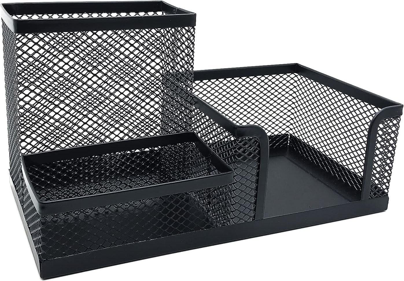 Enough space:3 compartments mesh desktop organizer, provides a well-designed size for your desk accessories, you can put what you need at hand without hindering you usage of.