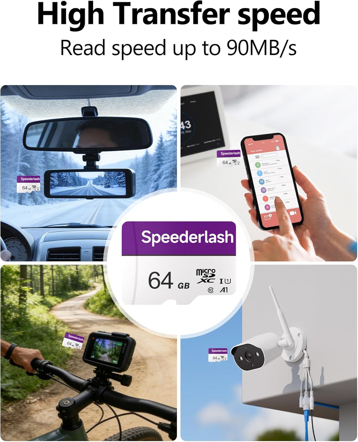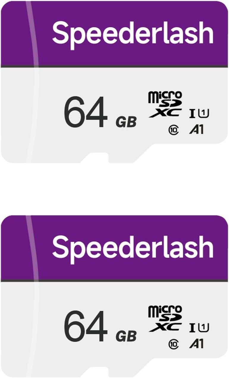 Micro SDXC Memory Card 64GB 2 Pack, Speederlash Camera Plus TF Card with Adapter, 90MB/s Read Speed, 4K UHD&5K Video Support, U1 V30 A1 Rated, for Security Camera, Smartphone, Drone, Tablet, PC