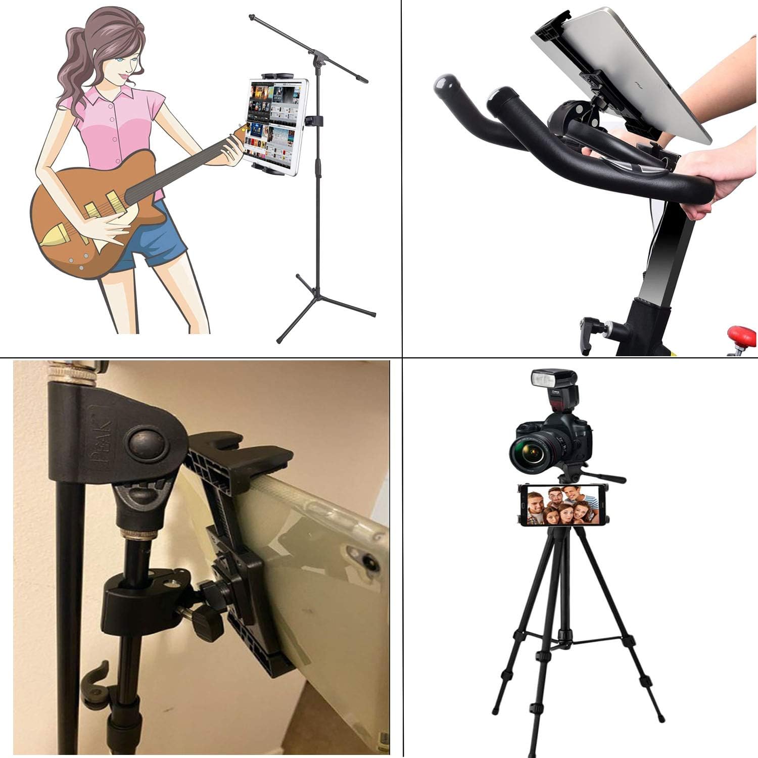 Microphone Music Stand Tablet Smartphone Holder Mount Heavy Duty 360 Degree Swivel Clamp Compatible with 3.5 to 13.5in Phone Tablets, iPad Pro 12.9 11 10.5 Air Mini, Surface Galaxy Tab, iPhone Galaxy