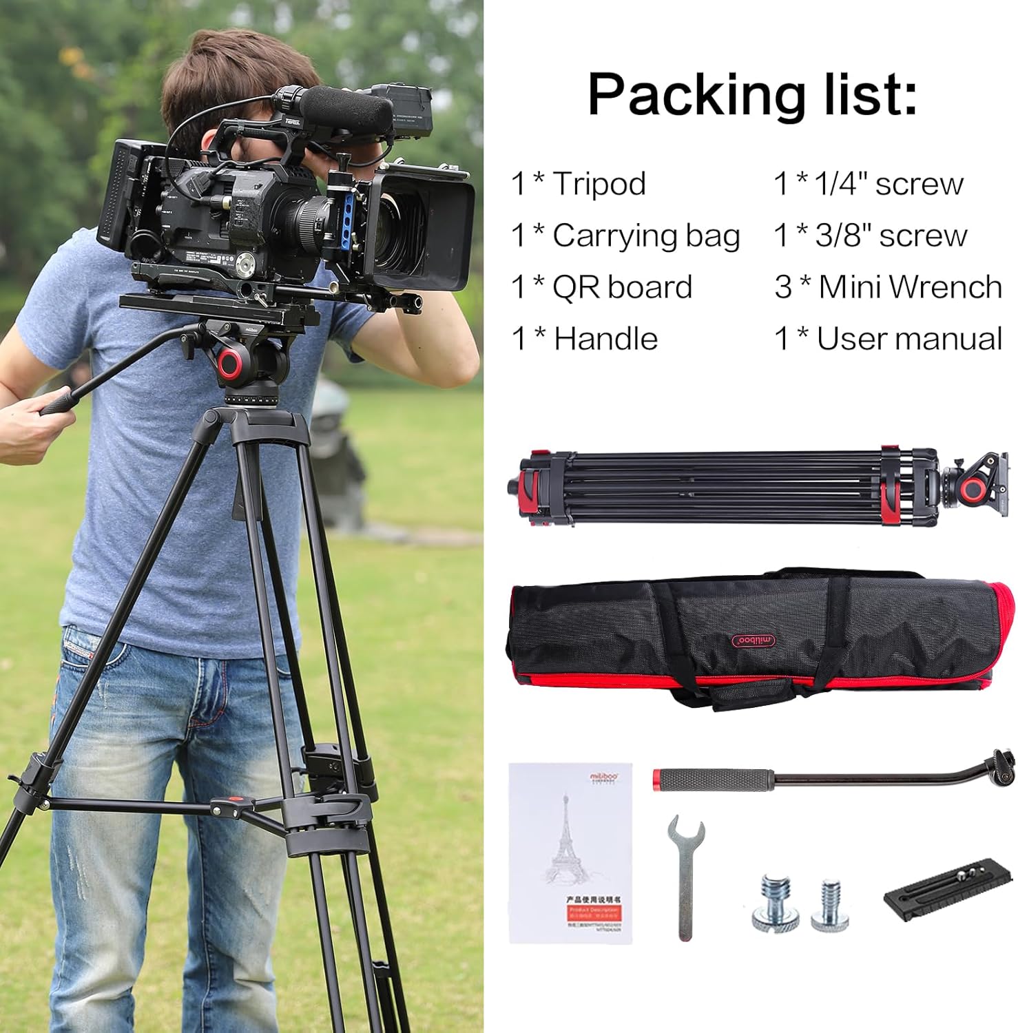 【Package Contents & After-Sales Service】 Package Details: Tripod body, MYT802 II hydraulic head, quick-release plate, handle, carrying case, and other accessories. As the original manufacturer, we offer a 2-year warranty (extendable to 6 years). Should you encounter any issues during use (including accessory replacements), please contact us anytime. Our professional after-sales team will resolve your concerns within 24 hours.