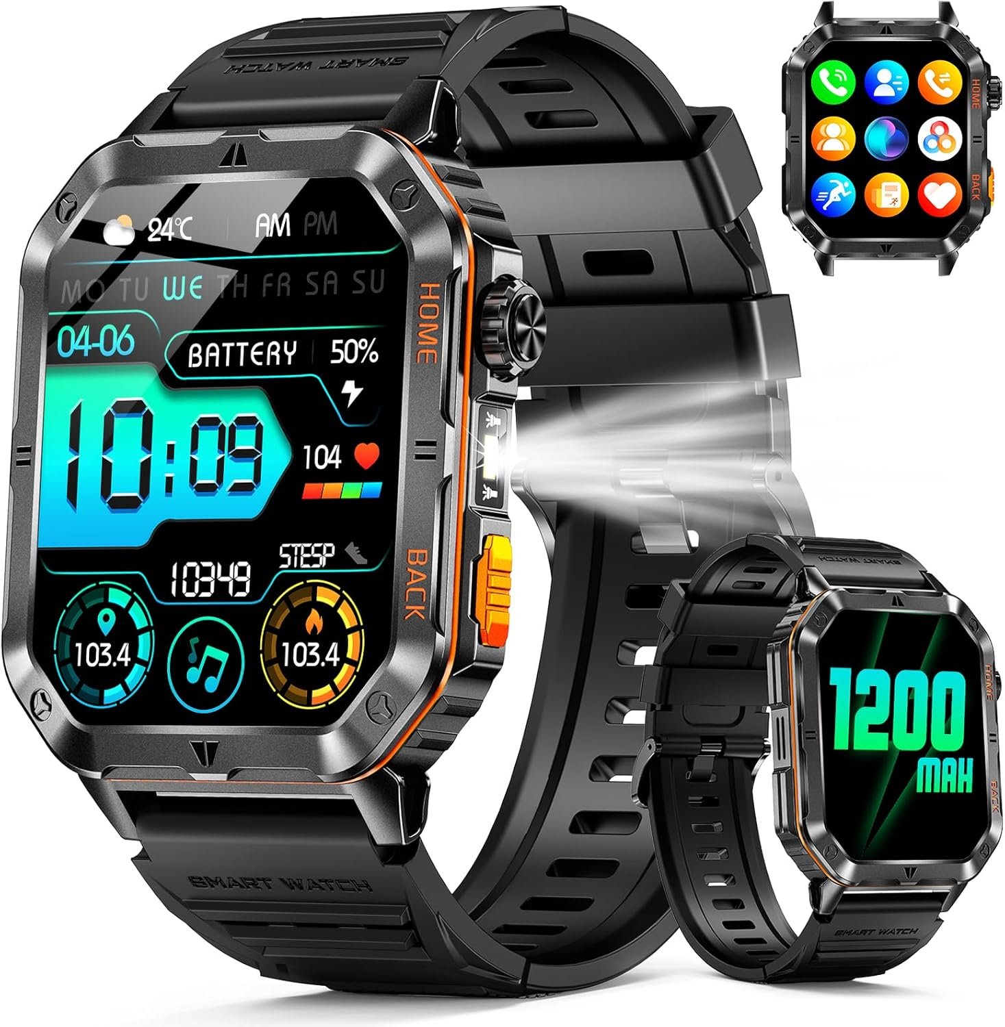 Military Smart Watch for Men, 2.01” Fitness Tracker with 1200mAh Long Battery Life, Bluetooth