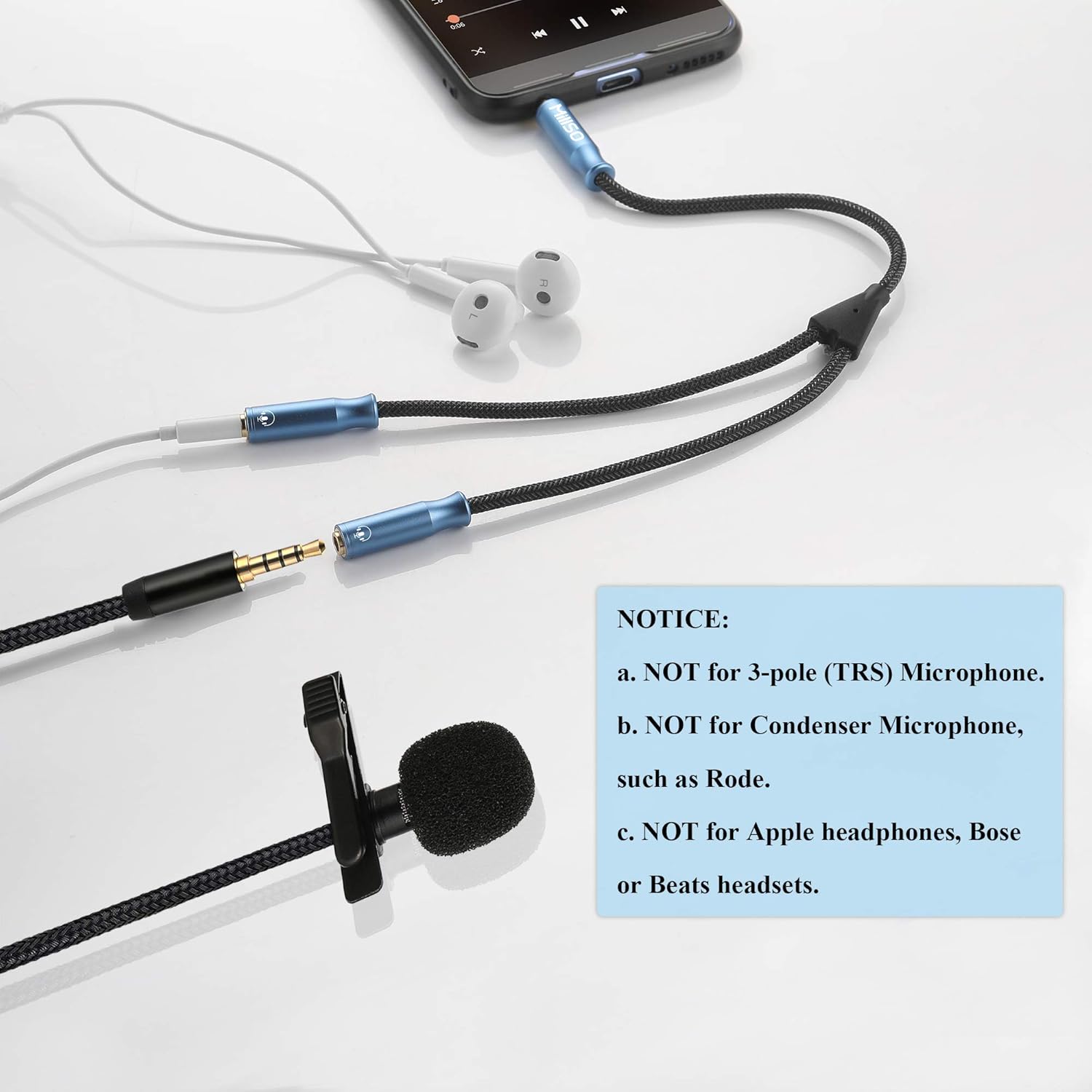 (✘) NOT work for Switch.(✘) NOT work for headsets in the OMTP standard.(✘) NOT work for Apple headphones, Apple earbuds, Beats or Bose headsets.(✘) NOT work for gaming headsets with separate headphone and microphone plug.