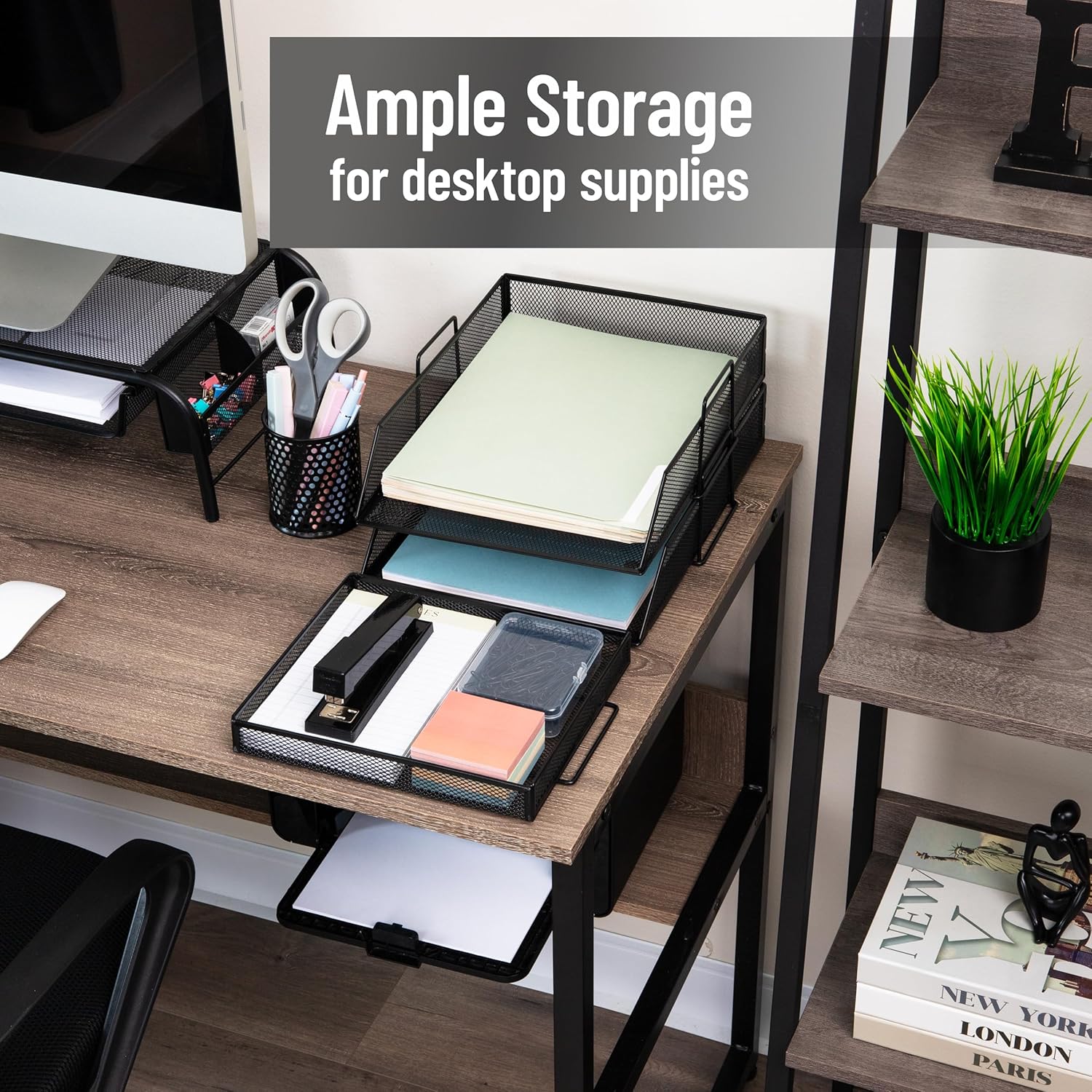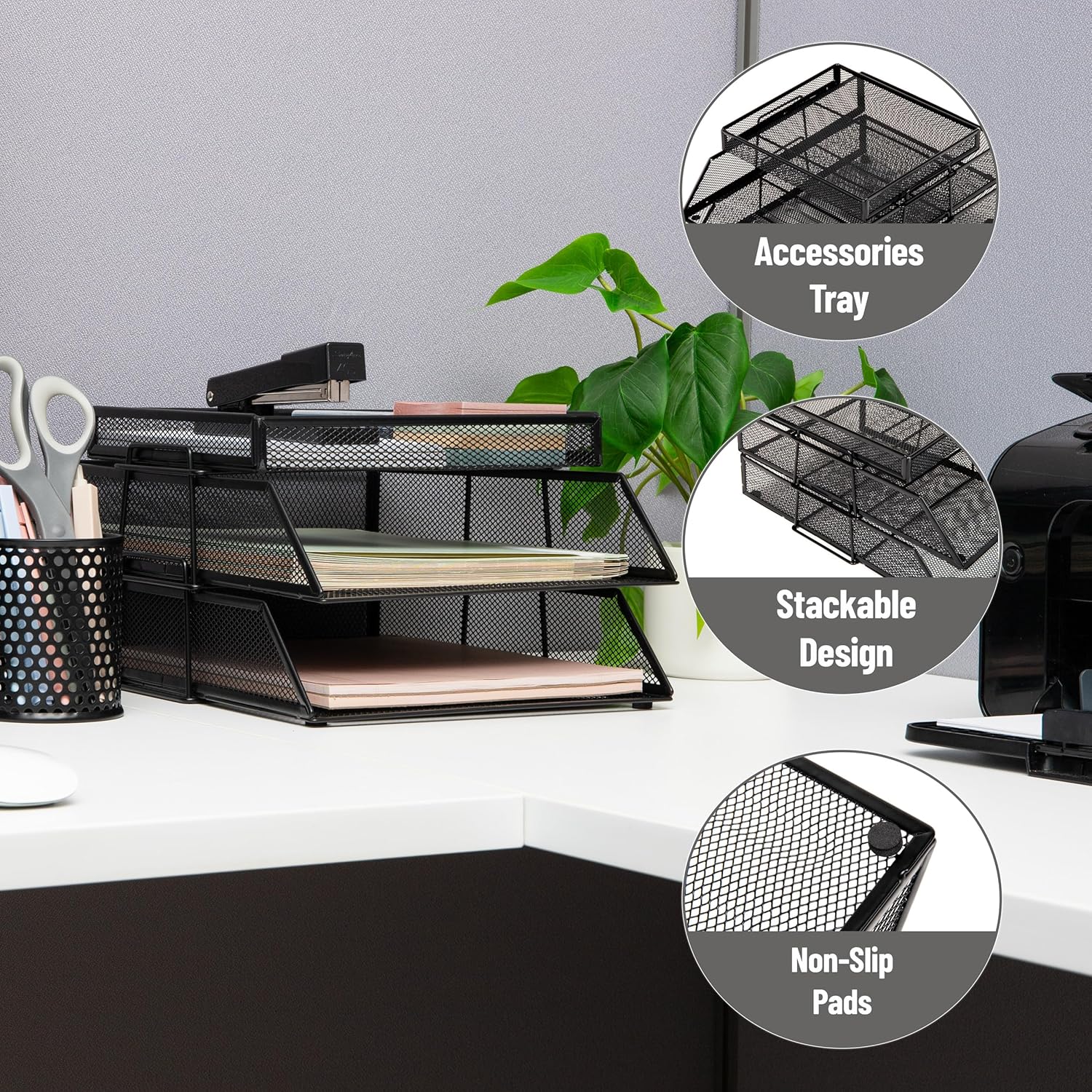 Dual Tier Design: Two stacked trays provide ample space for organizing papers, folders, and notebooks