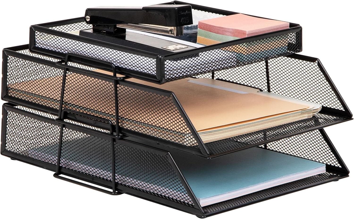 Dual Tier Design: Two stacked trays provide ample space for organizing papers, folders, and notebooks