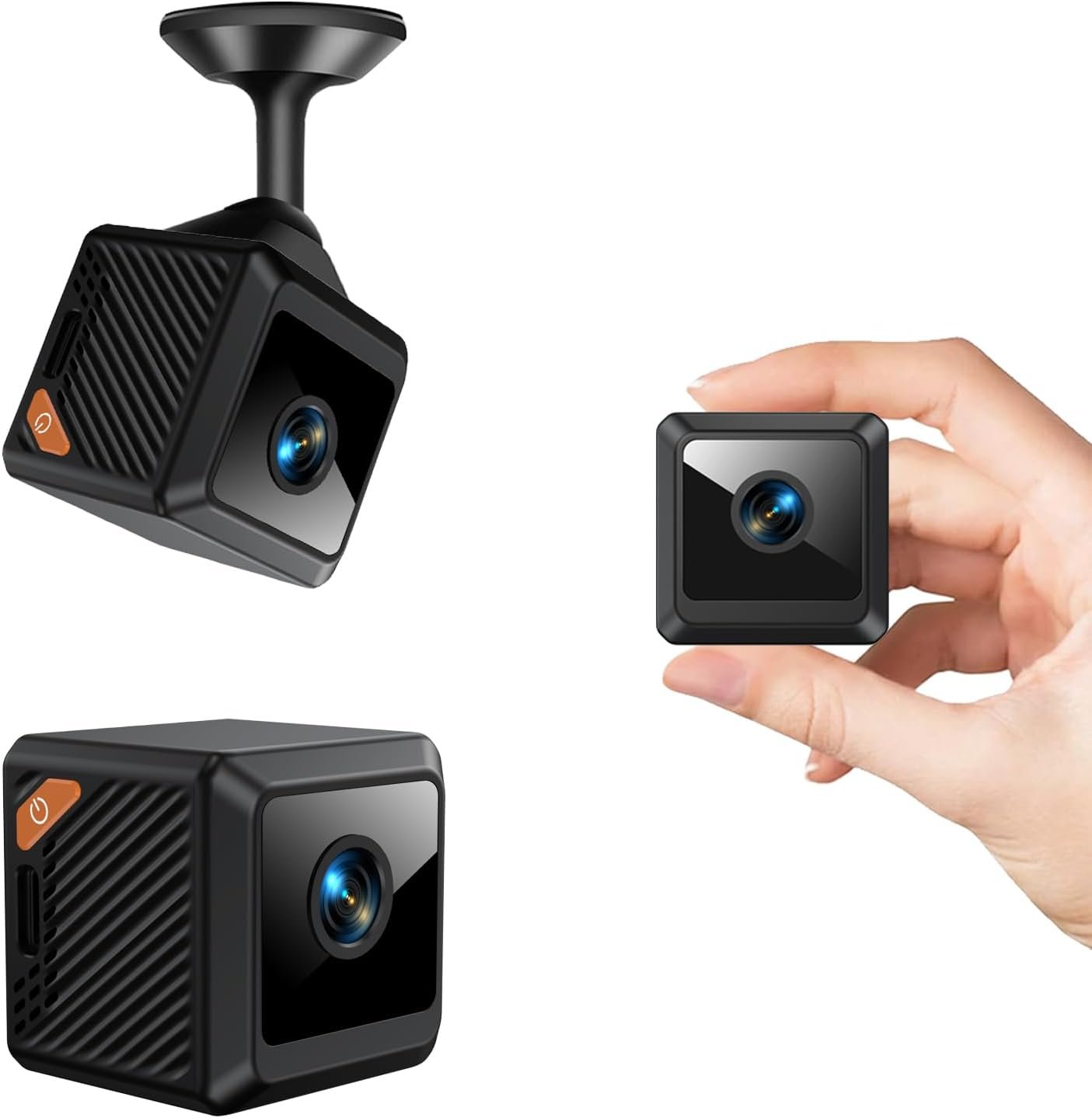 【360° Flexible Mounting – Indoor/Outdoor Versatility】 Includes adjustable stand, base, and wall mount for full 360° positioning. Attach to metal surfaces, place on shelves, or mount near entryways. Features light water resistance for outdoor durability.