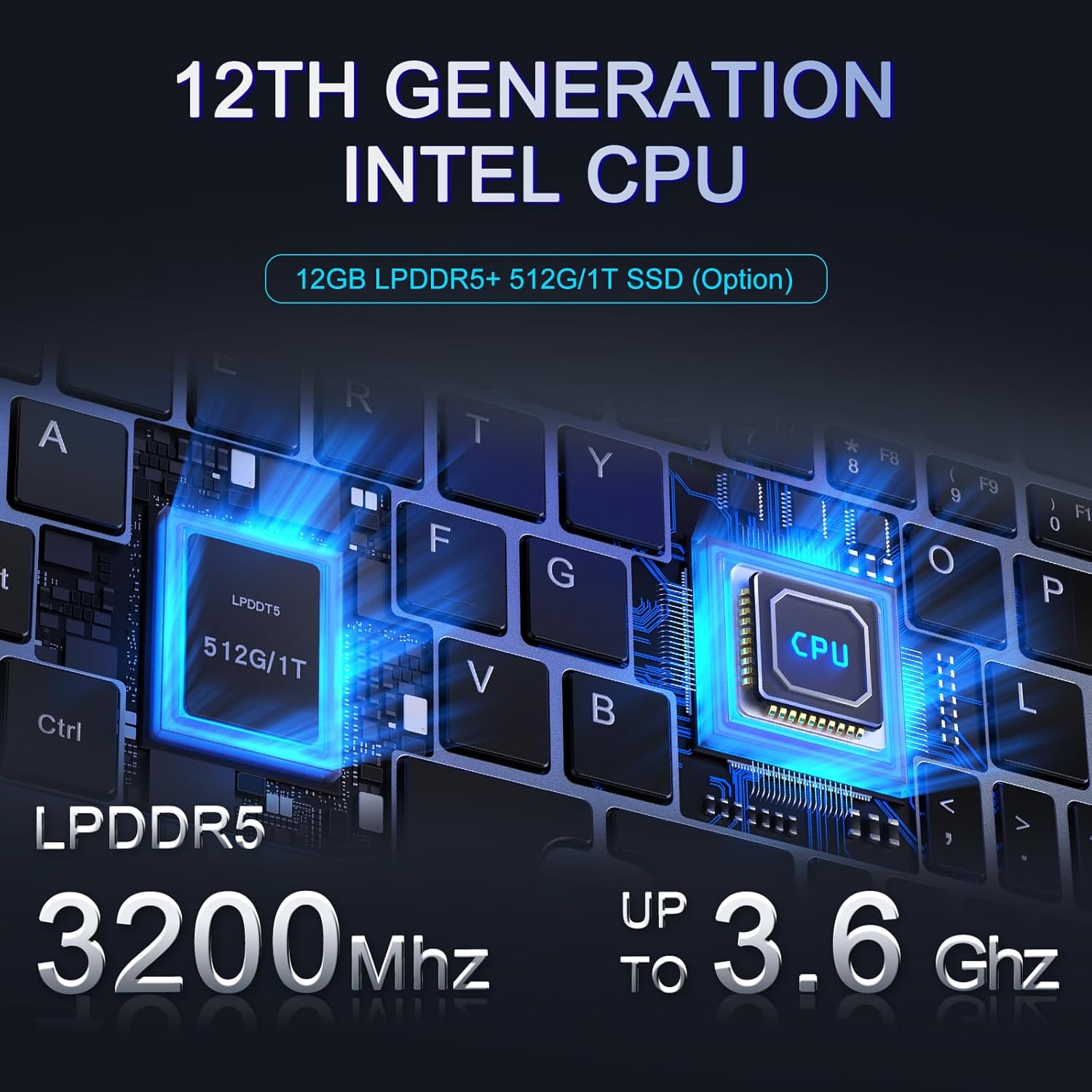Intel Twin Lake N150 processor (up to 3.6GHz) with 12GB RAM handles multitasking smoothly – perfect for remote work, online classes, or kids’ coding games. 512GB/1TB SSD provides faster boot-up than eMMC storage used in cheaper models