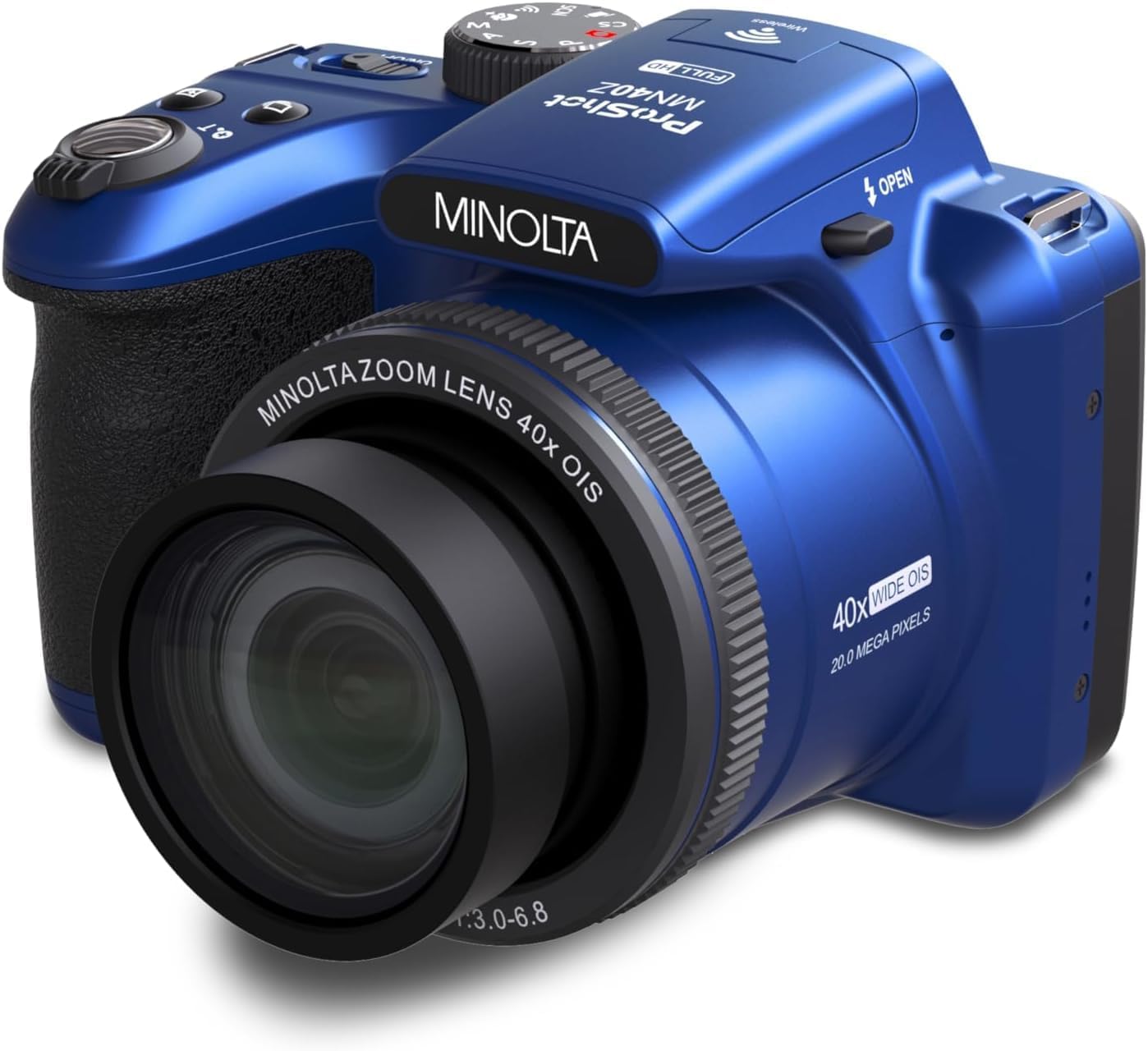 Minolta MN40Z 20MP Digital Camera – 40x Optical Zoom, 1080p FHD Video, 3.0″ LCD, Wi-Fi, Face/Smile/Blink Detection – Blue