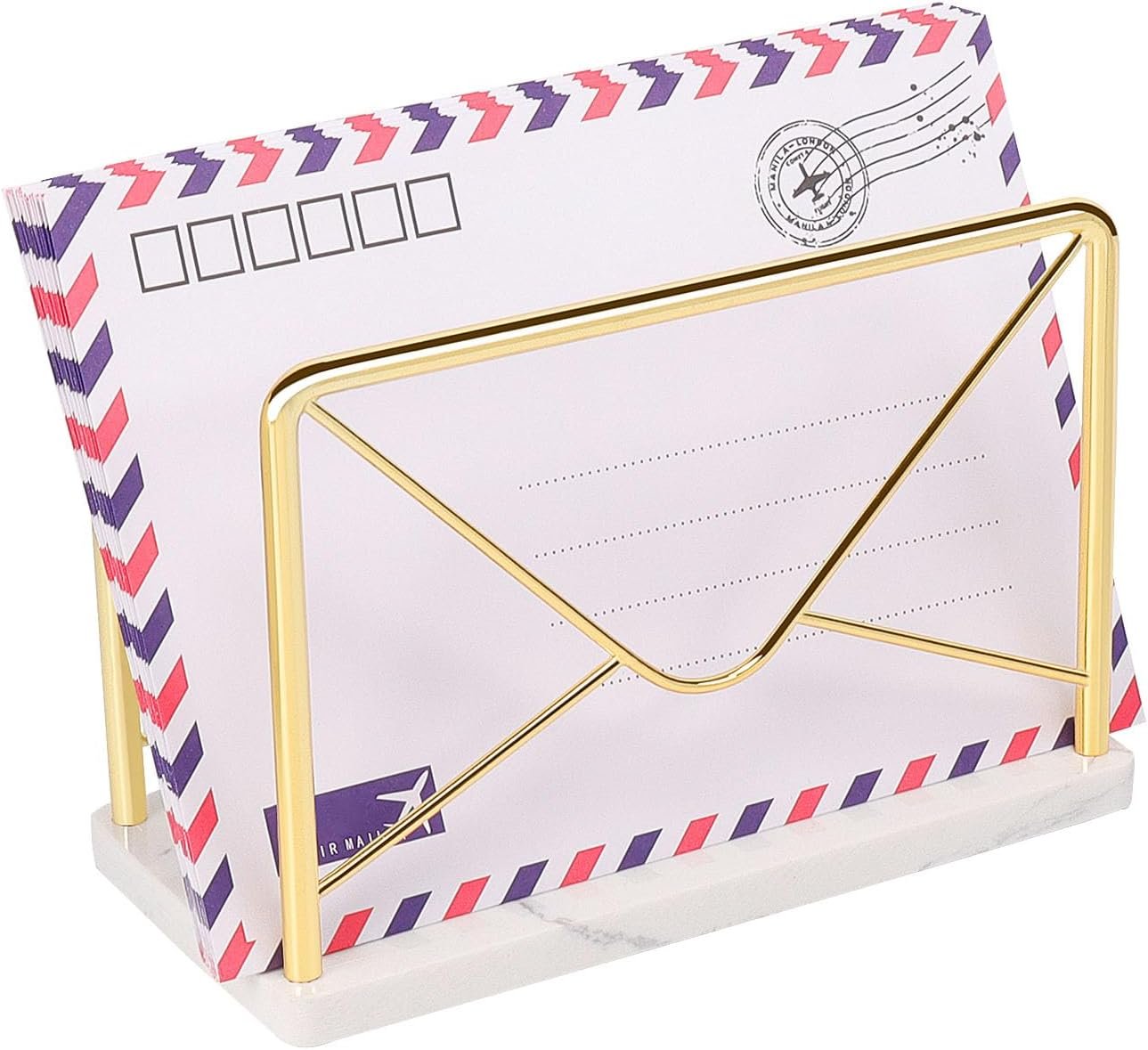 Modern Mail Holder for Home Office, Metal Letter Organizer Sorter for Desk, Cutout Mail Envelope Design, Bill Filling Paper Document Rack, Envelope Storage Rack with Marble Base