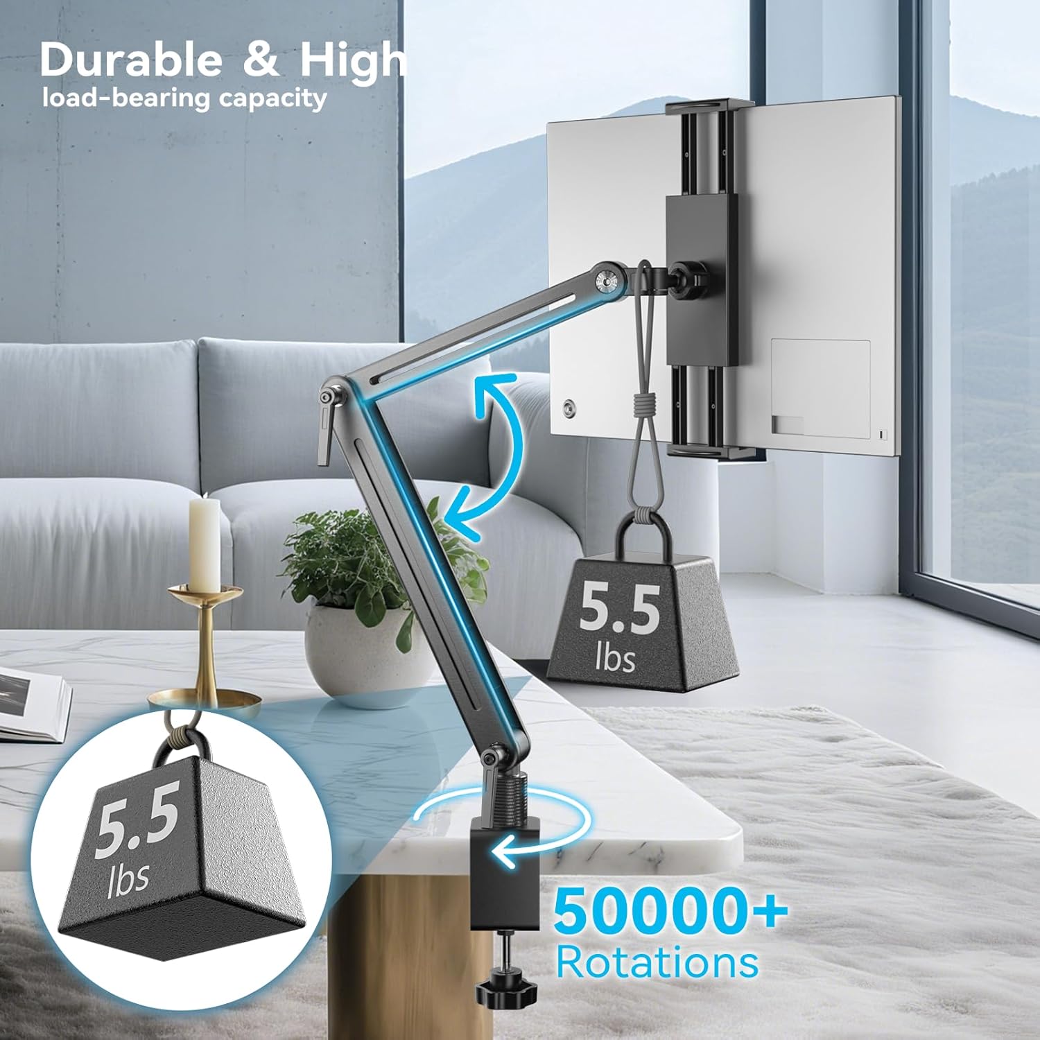 Wide compatibility: This portable tablet stand works with devices ranging from 4.7 to 15.6 inches, including portable monitors, tablets, iPad and phones. Tablet arm is perfect for the office, bedroom, living room, or dining room.