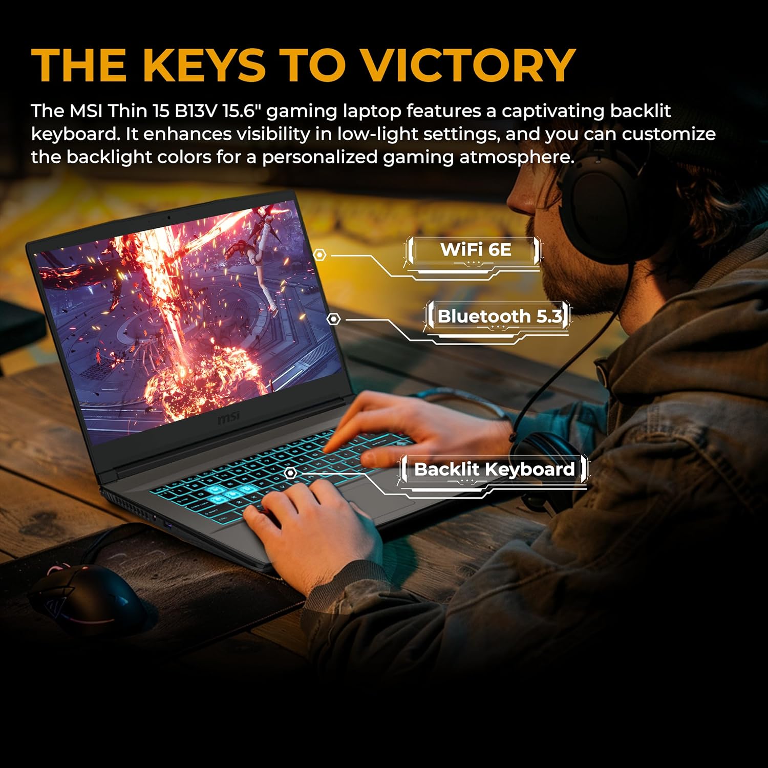 MSI Thin 15.6″ Gaming Laptop Spectacular Visual Delights–【15.6″ 144Hz FHD Thin Bezel IPS Display】Enjoy vivid, true-to-life colors on a flicker-free IPS screen. The 144Hz refresh rate…