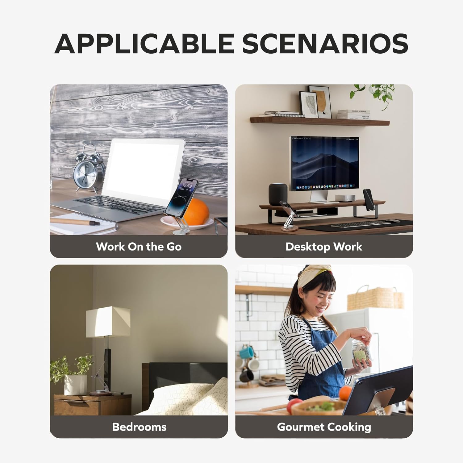 360 Degree Rotation Design – The desktop phone stand supports 360 degree rotation and infinite height adjustment, which can be adjusted at multiple angles to meet various viewing needs, flexibly adapting to a variety of scenarios, facilitating screen sharing and communication, and creating a personalized and comfortable experience