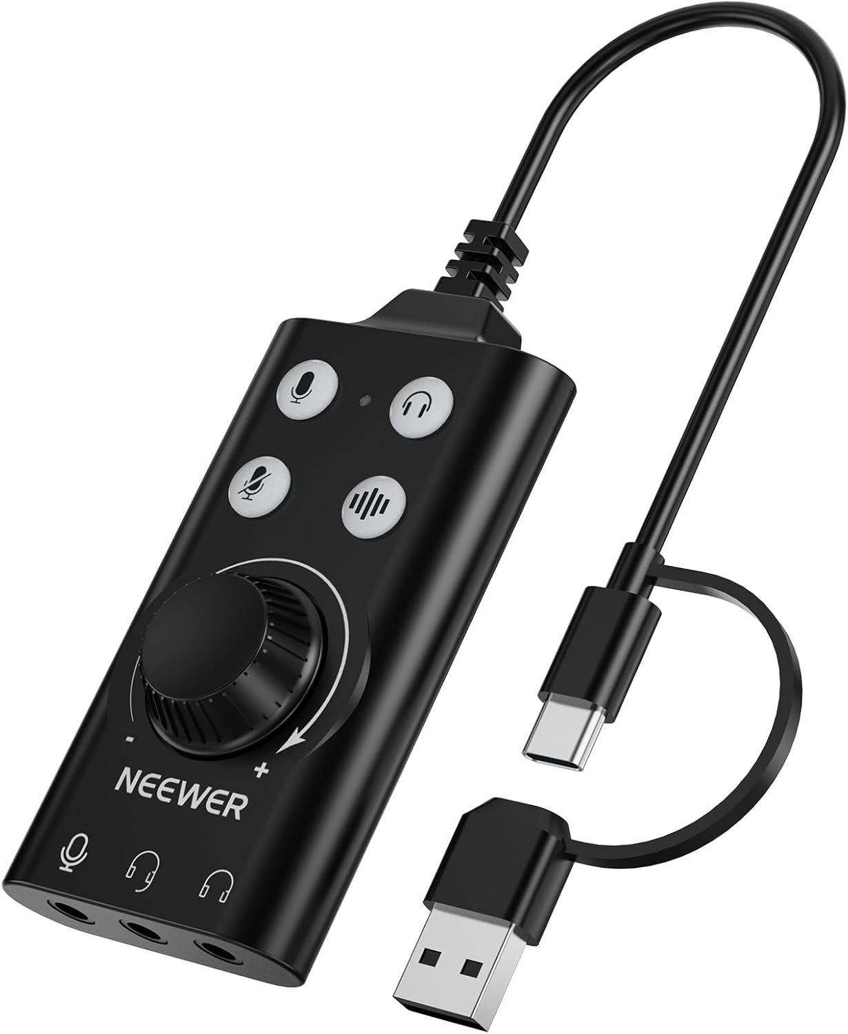 NEEWER PP07 USB C & USB A to 3.5mm External Sound Card, Portable Audio Adapter Accessories with Mute/Noise Cancellation/Volume & Gain Adjustment, Compatible with Mac Windows PC Phone PS4 PS5