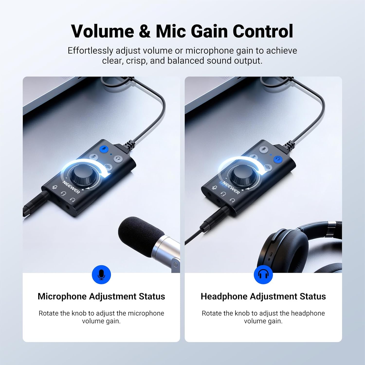 【Fine Tune At Your Fingertip】 Use the dial to adjust volume (headphone mode) or gain (mic mode) to control overall sound quality. Precise adjustments deliver crisp sound for gaming, live streaming, and video conferencing