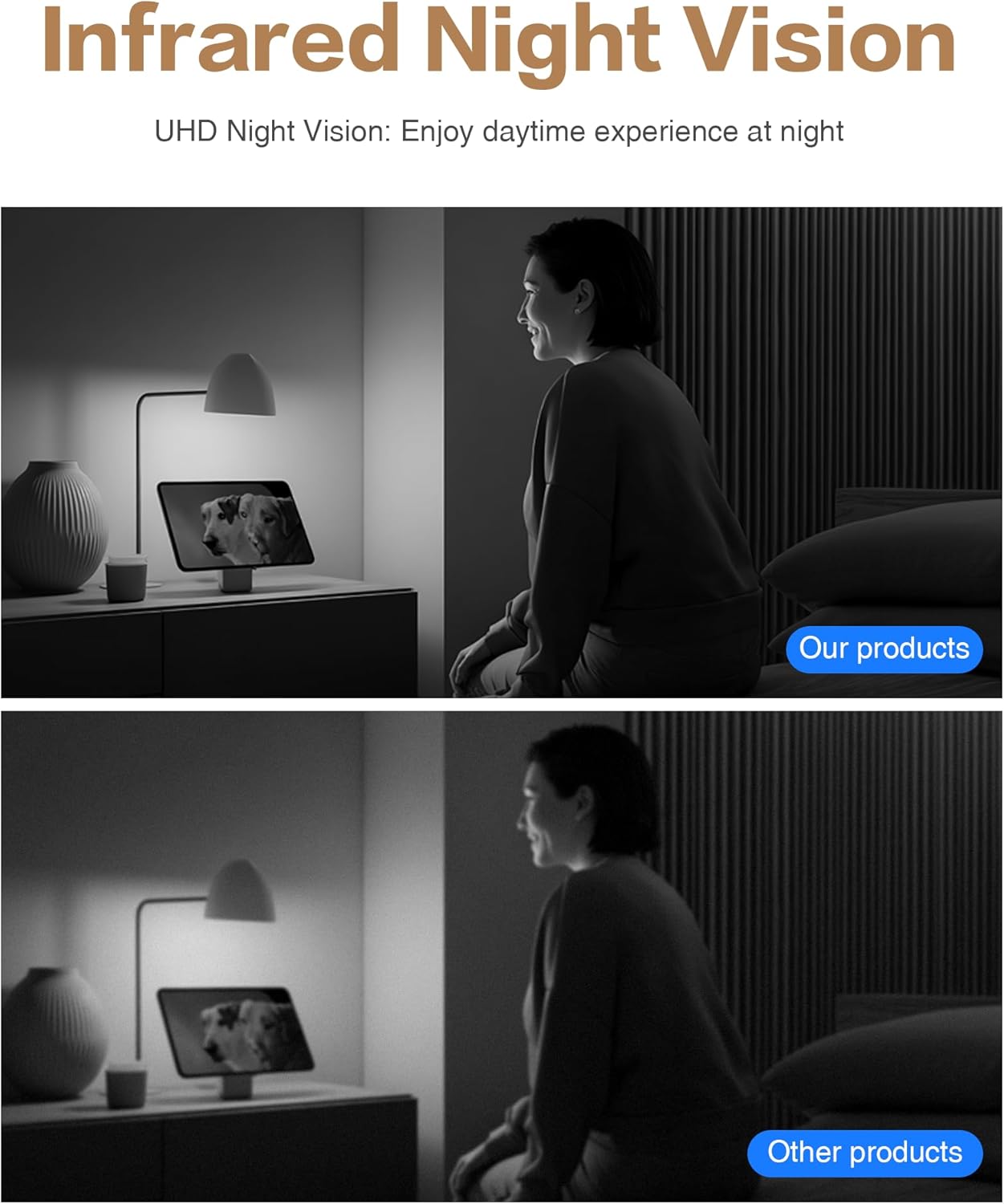 Day/Night Clarity: 4MP (2560×1440) HD lens, outperforming 1080P cameras—captures babies’ subtle moves, pets’ actions & home changes. 102° ultra-wide view, 0°~340° APP-controlled horizontal pan covers living rooms, bedrooms, nurseries—no blind spots. 10m color night vision works without lights; H.265 coding cuts bandwidth while maintaining quality for smooth remote viewing
