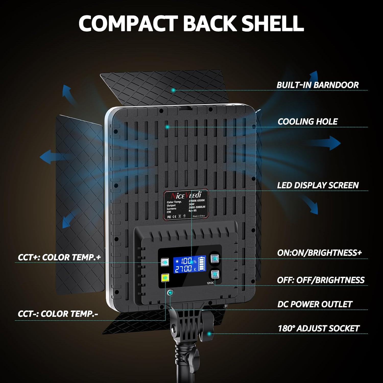 【POWERFUL BI-COLOR PHOTOGRAPHY LIGHTING KIT】This 36W photo light is equipped with 360 high-quality beads and delivers 3000 Lumens of brightness at full power. Adjust brightness from 0%–100% and color temperature from 2700K–6500K, it adapts perfectly to various environments—light for video recording, video production, short film lighting, interview setups, online course recording, product photography, and social media content creation on platforms like YouTube, TikTok, and Instagram.