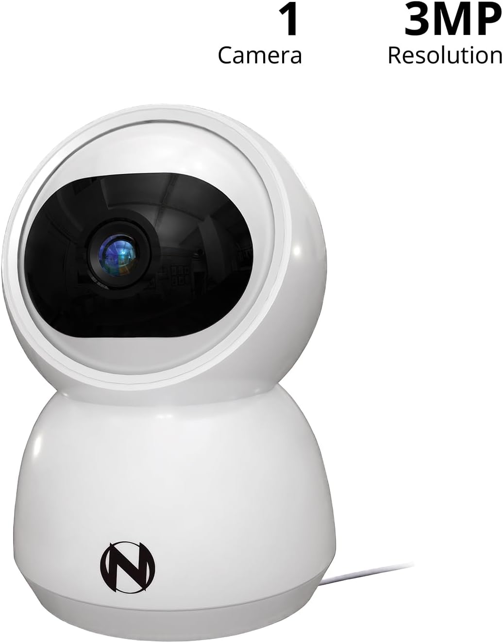 Night Owl is excited to offer our U.S. designed and engineered 3MP Indoor Plug-In Wireless Pan and Tilt Security Camera. Use the provided power adapter and cable to quickly plug in the camera then connect it to your Wi-Fi. With crystal-clear 3MP resolution, every detail inside your home or business is captured with unrivaled precision, ensuring you never miss a beat. Pan and tilt functionality lets you maneuver the camera side to side (355°) and up and down (70°) to capture every angle. Each camera has 2-way audio (talk & listen) so you can communicate effortlessly with anyone using our free mobile app. Need to reposition? No problem. This camera is easy to move as your coverage needs change, giving you peace of mind that your space is always safeguarded. Your security never sleeps, with 30 ft. of night vision, capturing crucial footage even in the darkest hours. You will also benefit from advanced AI human tracking which focuses on and tracks human movement within the camera’s field of view. Add your camera to a compatible Night Owl recorder or easily connect to your router via Wi-Fi and view it through our app. Our free remote viewing app for iOS and Android smart devices keeps you connected and provides easy access to your recordings with no fees. With flexible storage options you can store your valuable footage on a microSD card or your recorder’s hard drive. Your peace of mind is just a plug away. Upgrade your security today! What’s Included: Plug-In Wireless Camera: 1 x Indoor Plug-In Wireless Pan and Tilt Camera 1 x USB Cable with Power Adapter 1 x Mount with Hardware 1 x Quick Setup Guide