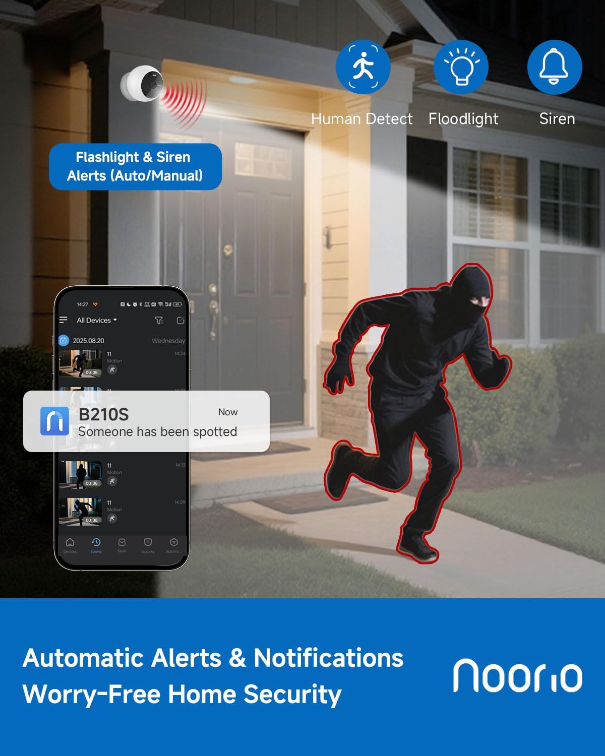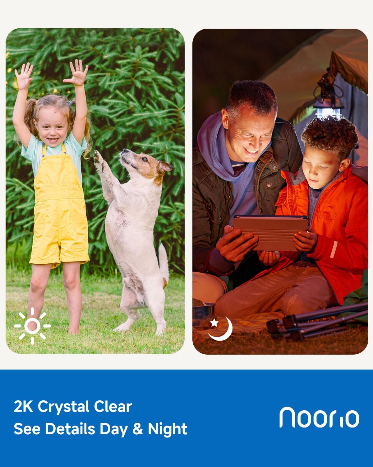 【Smart AI Detection + Two-Way Talk】AI reduces false alerts by distinguishing people and pets. Custom motion zones let you focus on what matters. This surveillance camera also features two-way audio, allowing you to listen and communicate via the Noorio App—perfect for use as a baby monitor or to check on pets