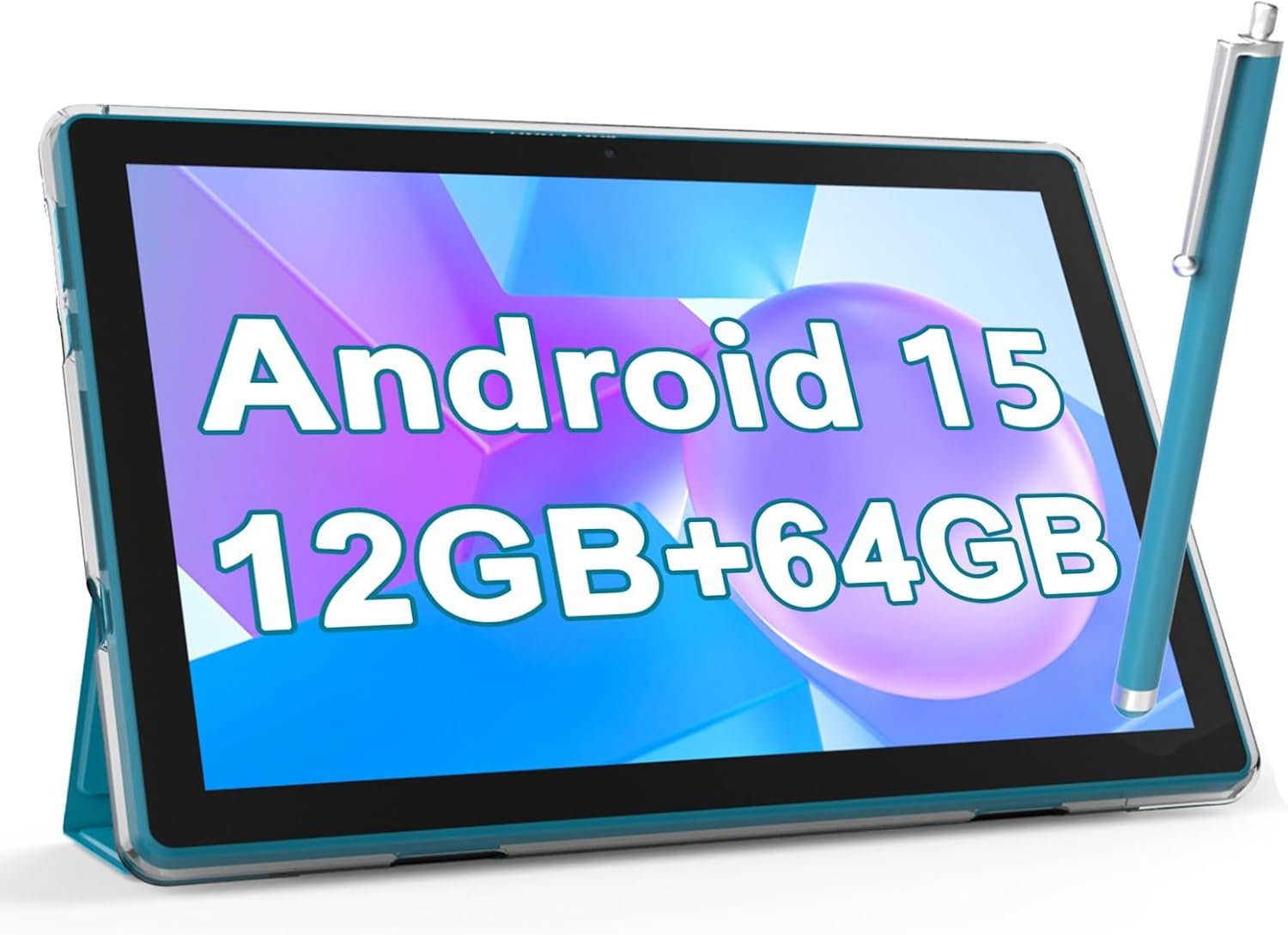 10.1 Inch Android tablet | HD large screen | Powerful battery life | 5G&Wi Fi 6  Upgrade your digital life! This 10.1 inch Android tablet is equipped with a 1280*800 high-definition display, providing a clear and delicate visual experience. A powerful 2.0GHz processor paired with 12GB (4+8 expansion) of RAM ensures smooth multitasking and large-scale applications. 64GB flash memory meets daily storage needs and supports microSD card expansion to 1TB, making it easy to store more photos, videos, and files.  The 8MP+2MP dual camera allows you to capture exciting moments at any time, while the 6000mAh large capacity battery provides long-lasting battery life, supporting long-term entertainment and office use. 5G and Wi Fi 6 dual high-speed network connections make downloading, watching movies, and gaming more enjoyable.  Electronics tablets Comes with a tablet protective cover and touchscreen pen, providing comprehensive protection for the device and enhancing the user experience. Whether for work, study, or entertainment, this tablet is your ideal choice!  10.1 inch high-definition screen | 12GB large storage+64GB storage (expandable) 6000mAh long battery life | 5G+Wi Fi 6 high-speed connection Dual camera+With Tablet protective Case and Stylus| Android 15 tablet