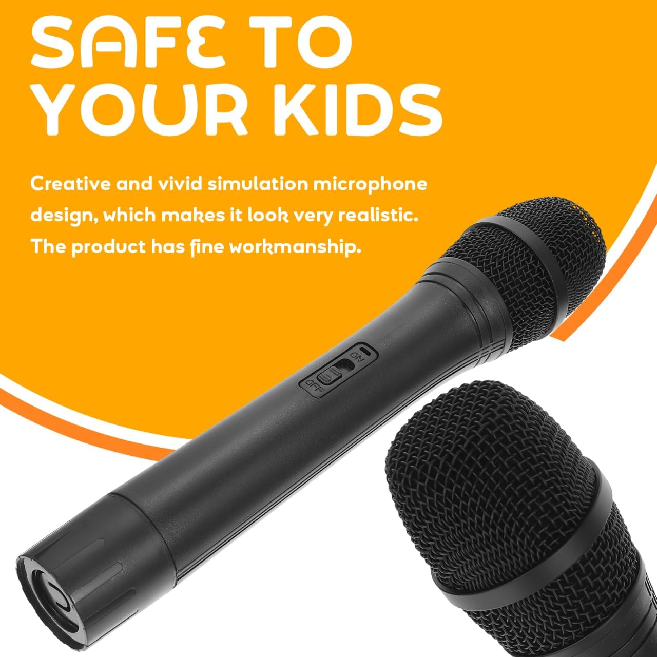 Durable abs material: Made from abs plastic the microphone toy offers a sturdy structure that withstands regular play while remaining safe and comfortable for kids to handle during extended use.measures 9.44 inches to match the length and proportions of a real handheld microphone for a convincing look on stage or in photos