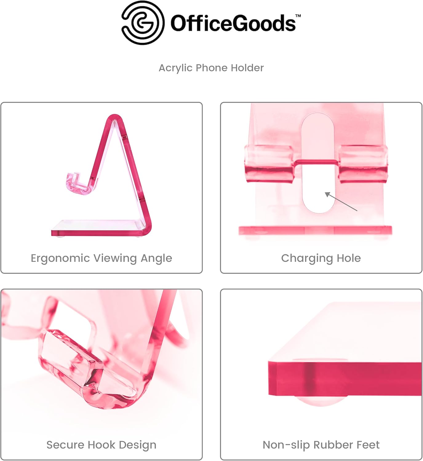OfficeGoods Acrylic Phone Holder Aesthetic Desk Phone Stand, Compatible with 4-8 inch Screens, Office Decor and Work from Home Essentials – Pink
