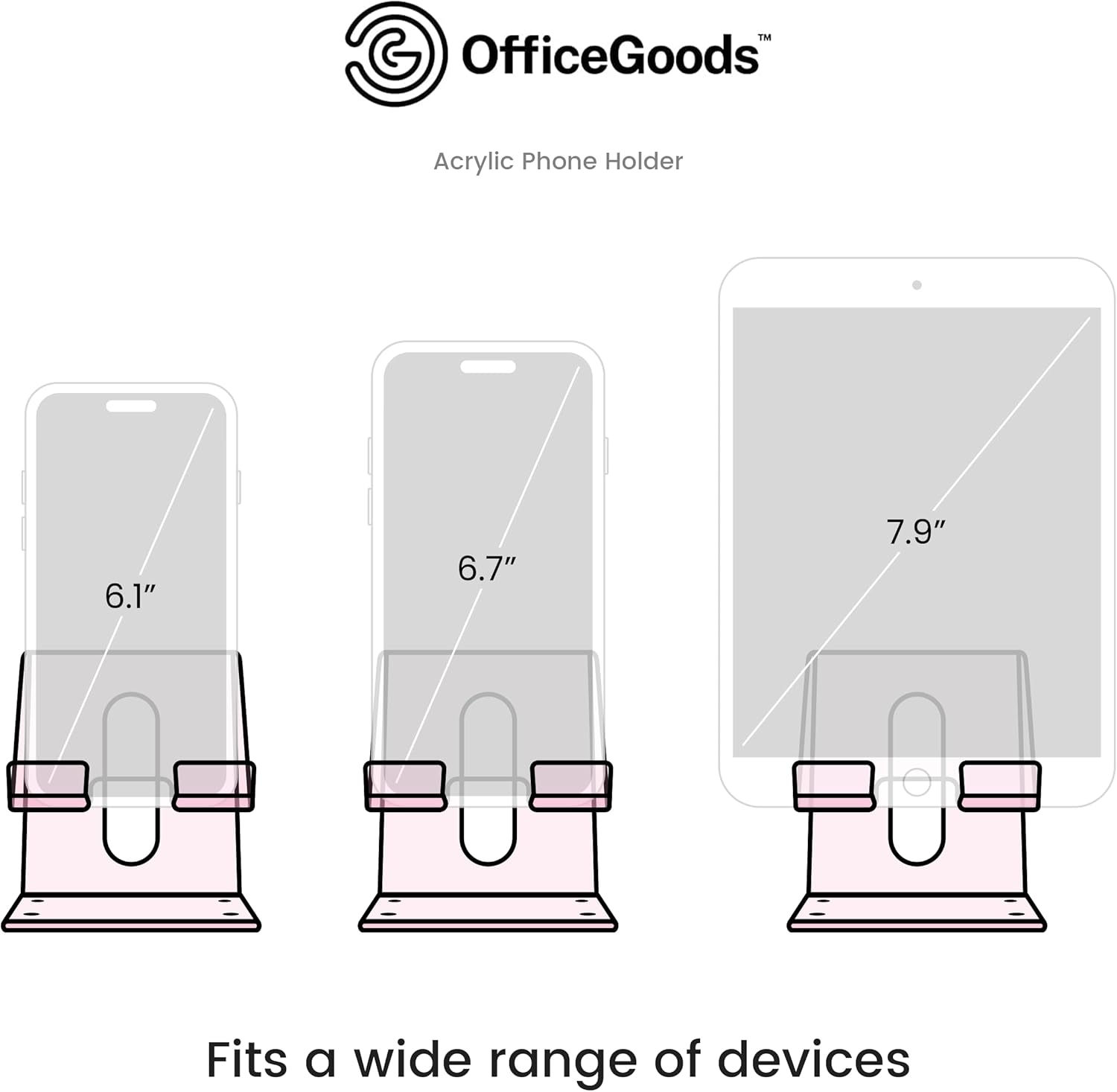 FITS A WIDE RANGE OF DEVICES – This durable acrylic stand is compatible with devices sized between 4” and 8” diagonally—perfect for most phones and smaller tablet computers like the iPad Mini and Kindle.